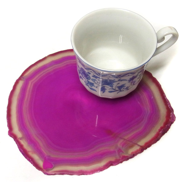 染色することにより、色の濃淡ができ、メノウの縞模様がより一層美しくなります。置物を置いたり、鉱物を置いたりのインテリアとしてや、グラスなどを置くコースターとしてもお楽しみ頂けます。