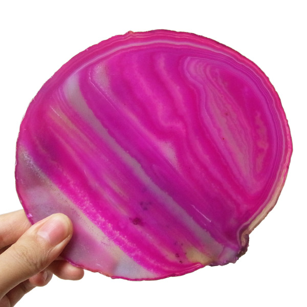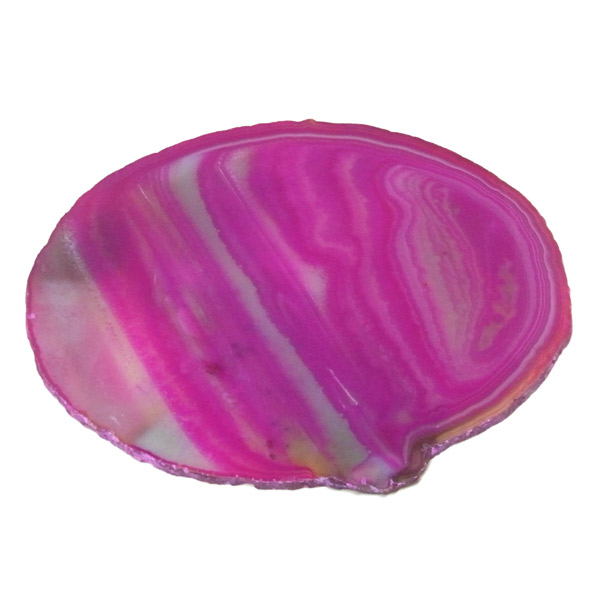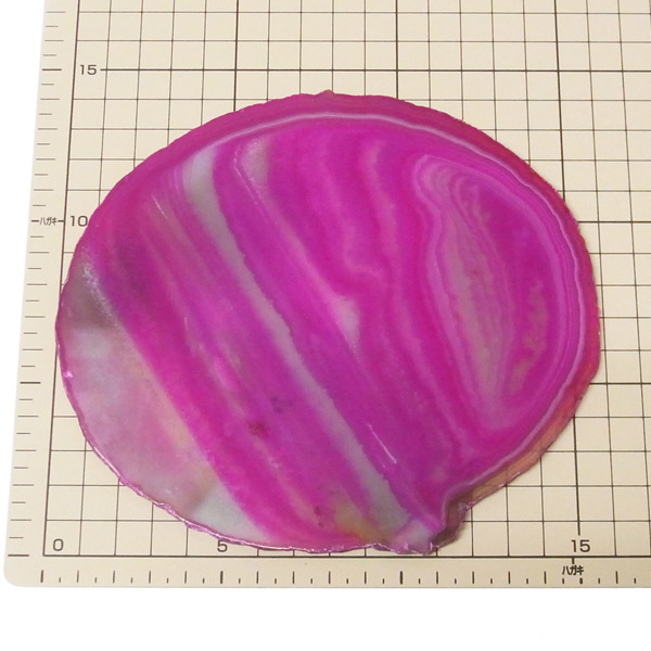 ブラジル産メノウを染色し、薄くスライスした色鮮やかなメノウスライスです。カラーはピンク、大きさは特大サイズです。
