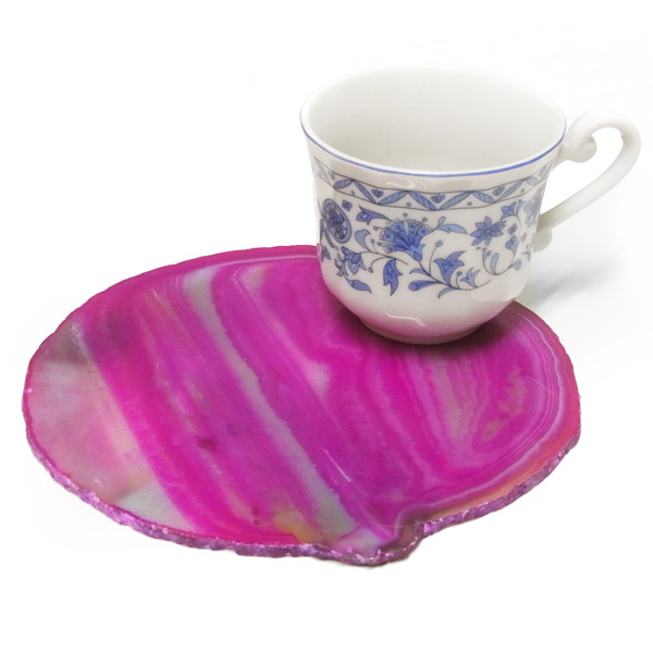 染色することにより、色の濃淡ができ、メノウの縞模様がより一層美しくなります。置物を置いたり、鉱物を置いたりのインテリアとしてや、グラスなどを置くコースターとしてもお楽しみ頂けます。