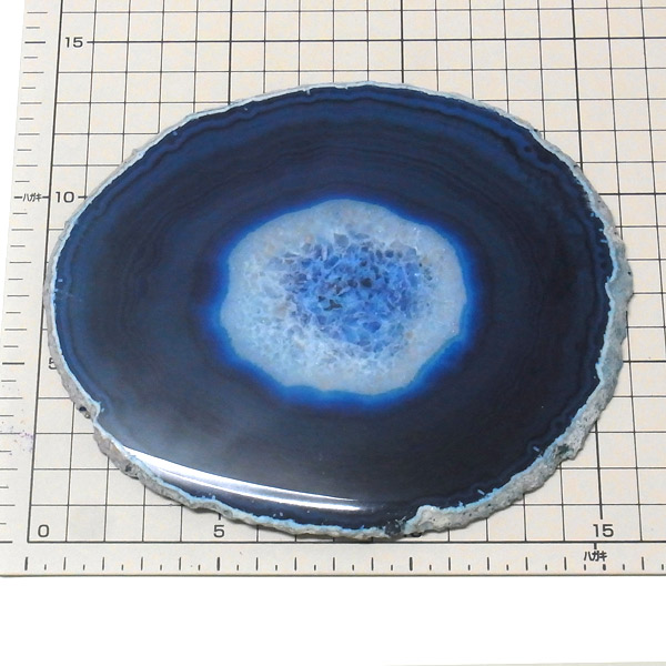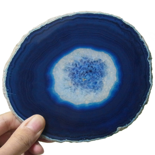 ブラジル産メノウを染色し、薄くスライスした色鮮やかなメノウスライスです。カラーはブルー、大きさは特大サイズです。