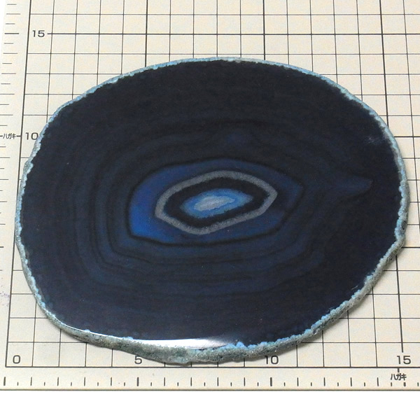 ブラジル産メノウを染色し、薄くスライスした色鮮やかなメノウスライスです。カラーはブルー、大きさは特大サイズです。