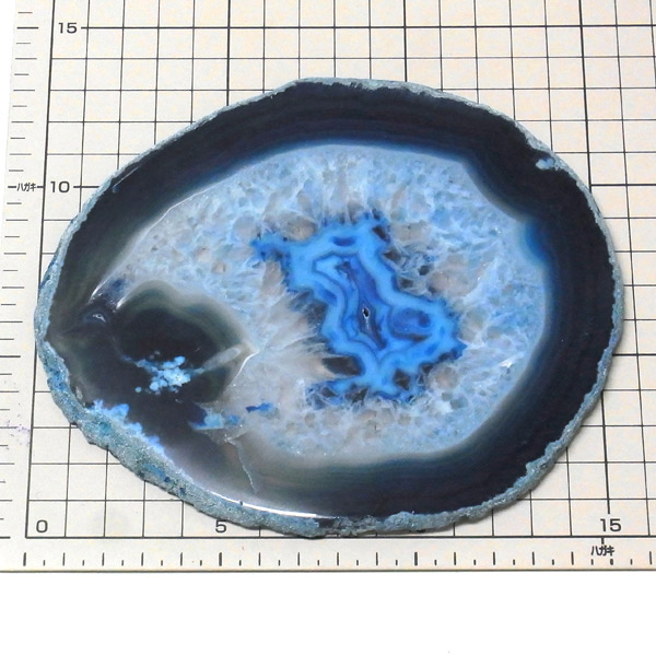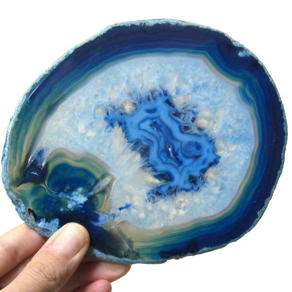 ブラジル産メノウを染色し、薄くスライスした色鮮やかなメノウスライスです。カラーはブルー、大きさは特大サイズです。