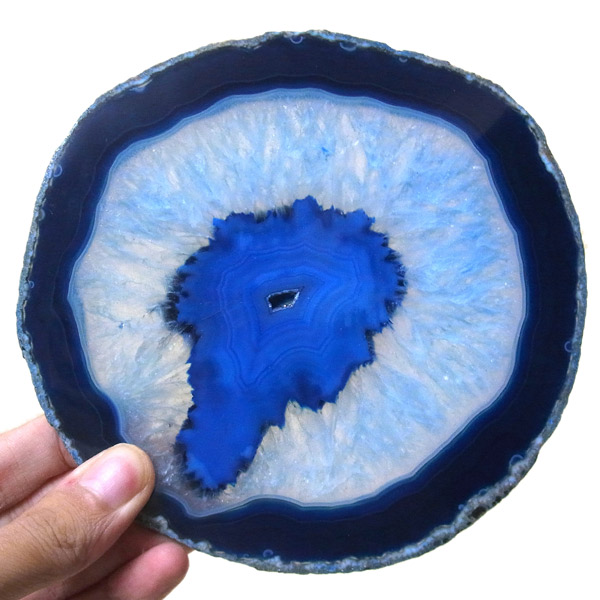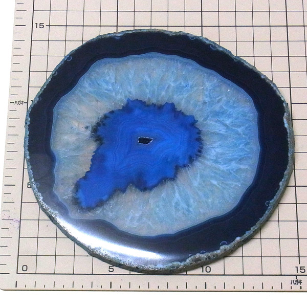 ブラジル産メノウを染色し、薄くスライスした色鮮やかなメノウスライスです。カラーはブルー、大きさは特大サイズです。