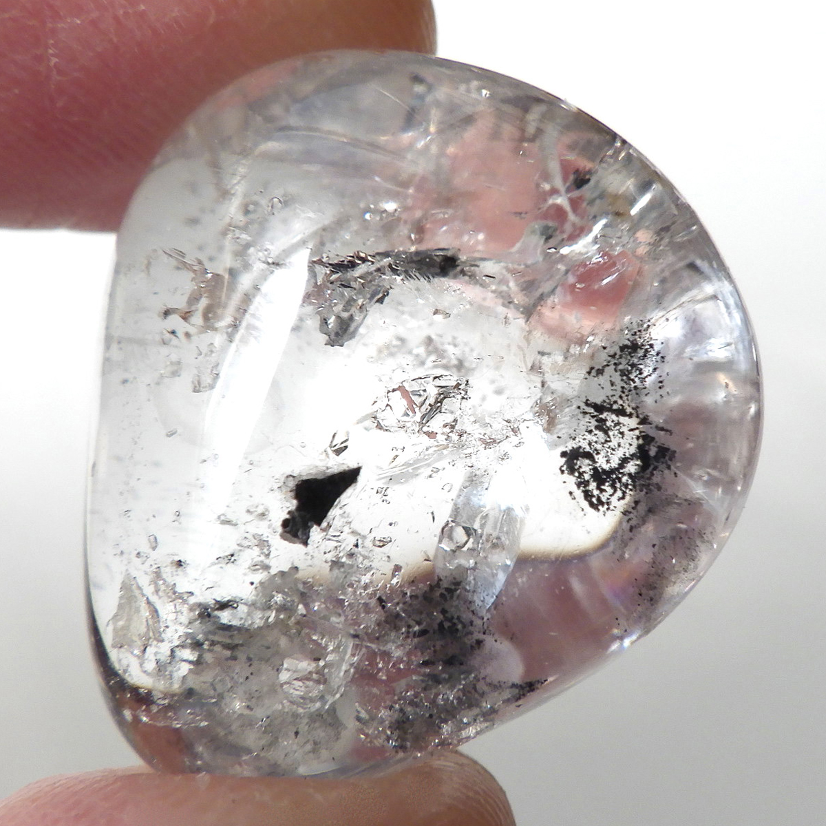 黒い内包物は、グラファイト(石墨)で、鉛筆の芯などによく使われますが、ダイヤモンドと同じ成分で硬度が大変低いものです。