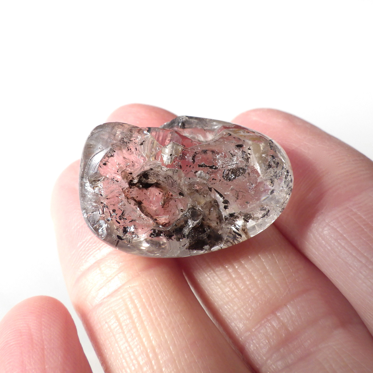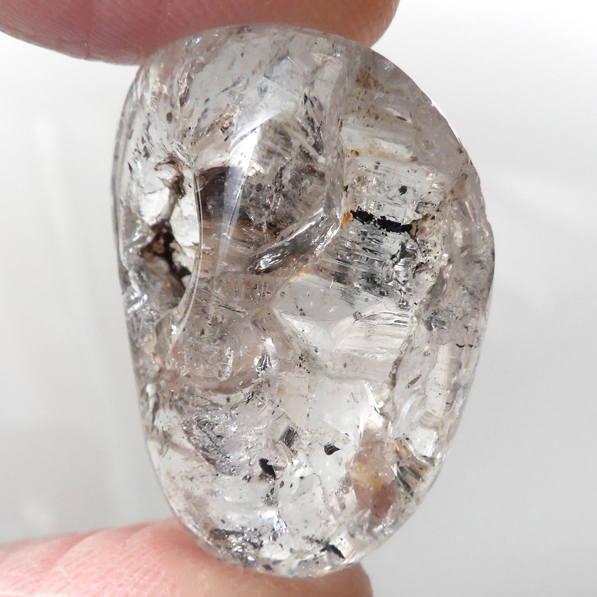 黒い内包物は、グラファイト(石墨)で、鉛筆の芯などによく使われますが、ダイヤモンドと同じ成分で硬度が大変低いものです。