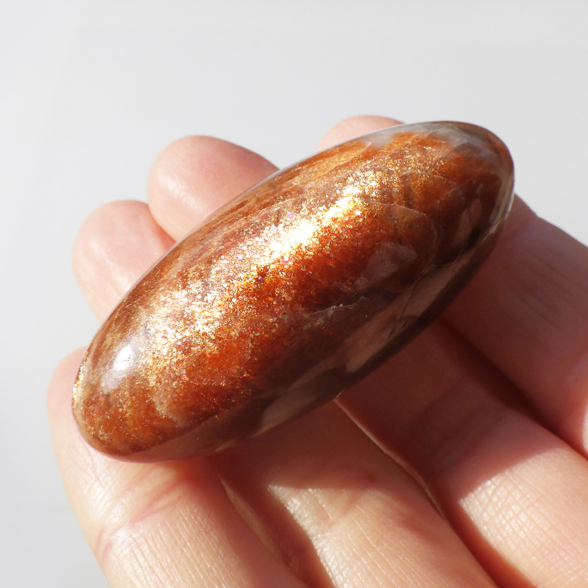 サンストーンは、自信の無い人やコンプレックスの強い人に対して、冷えた心を太陽の光が温めてくれるように、自信を取り戻す事ができます。安心感・自己肯定感を与えてくれ、苛立ちや感情の起伏を抑えてコンプレックスや心の傷が癒してくれます。 そして、心に余裕をつくり、さらに人生に対する創造性を高め、前向きに人生を楽しむ事を教えてくれます。 精神的に自分を追い詰めやすいタイプの人にとっては、ストレスが緩和されるといわれています。