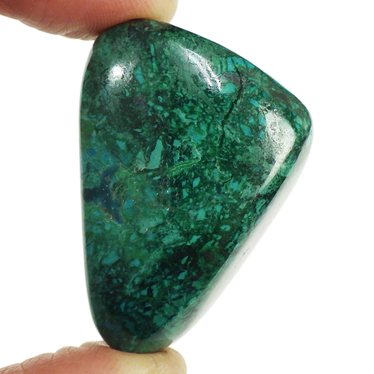 クリソコラは、何事に対してもしっかりと地に足を着けた実りあるものになるような生活ができるよう、サポートしてくれる石とされています。 仕事や恋愛、幸せな家庭生活や安産のお守りとしても人気です。 また、生活リズムを正しく整えてくれる作用もあり、心身のバランスを整えてストレスを吸収し、情緒を安定させてくれるといわれています。 体からマイナスエネルギーを抜いてくれる石でもあるので、健康のお守りとしてもオススメです。