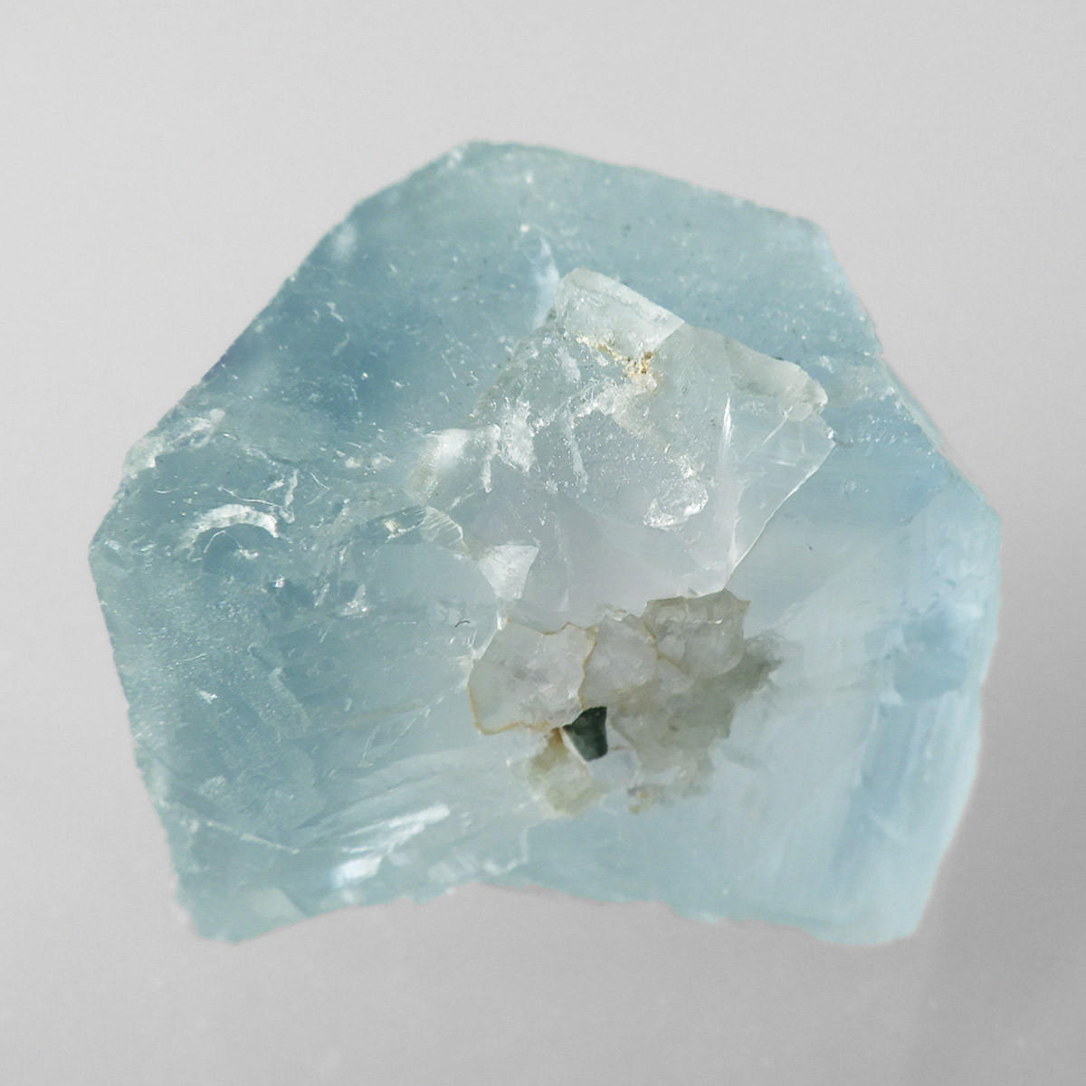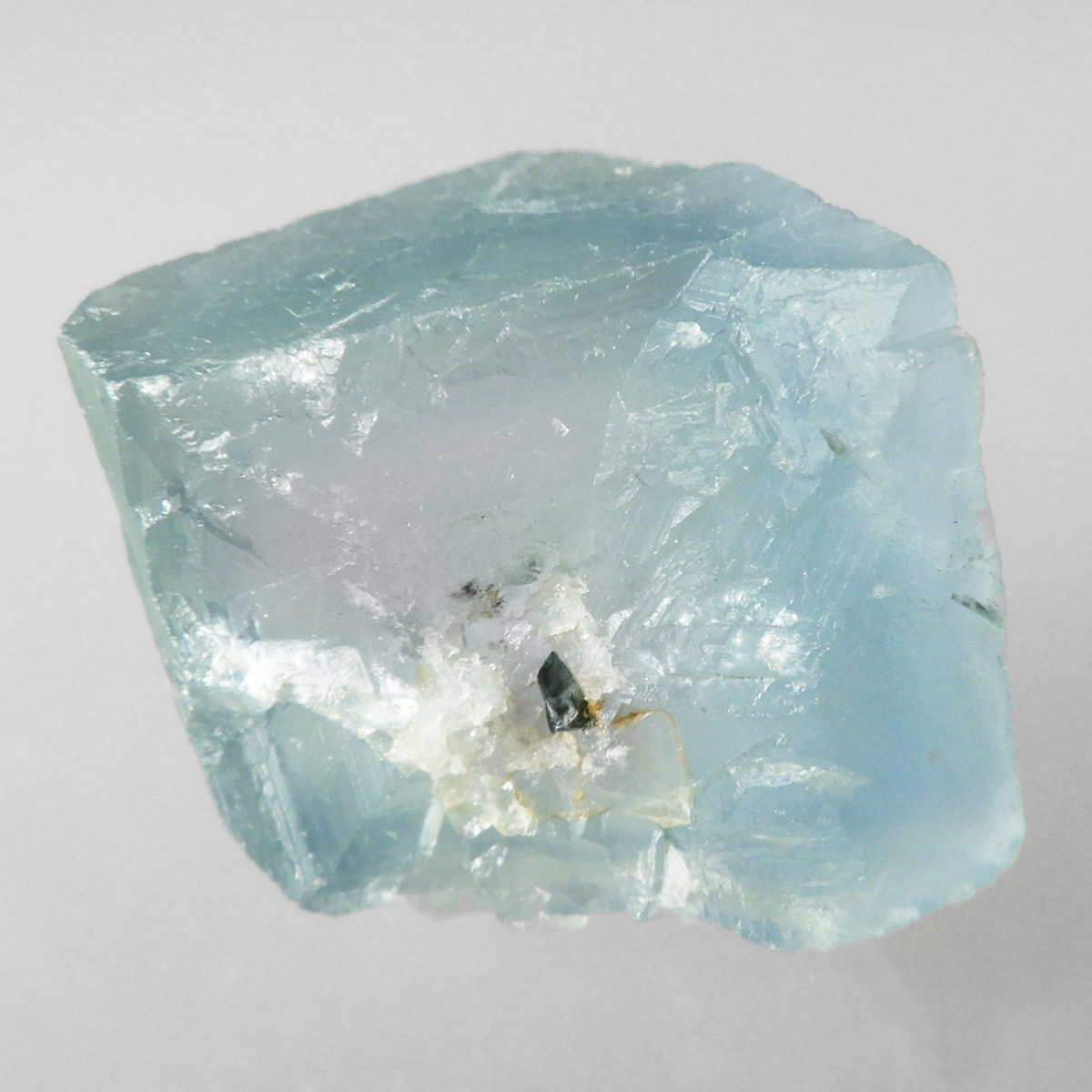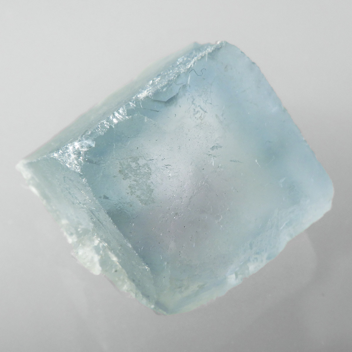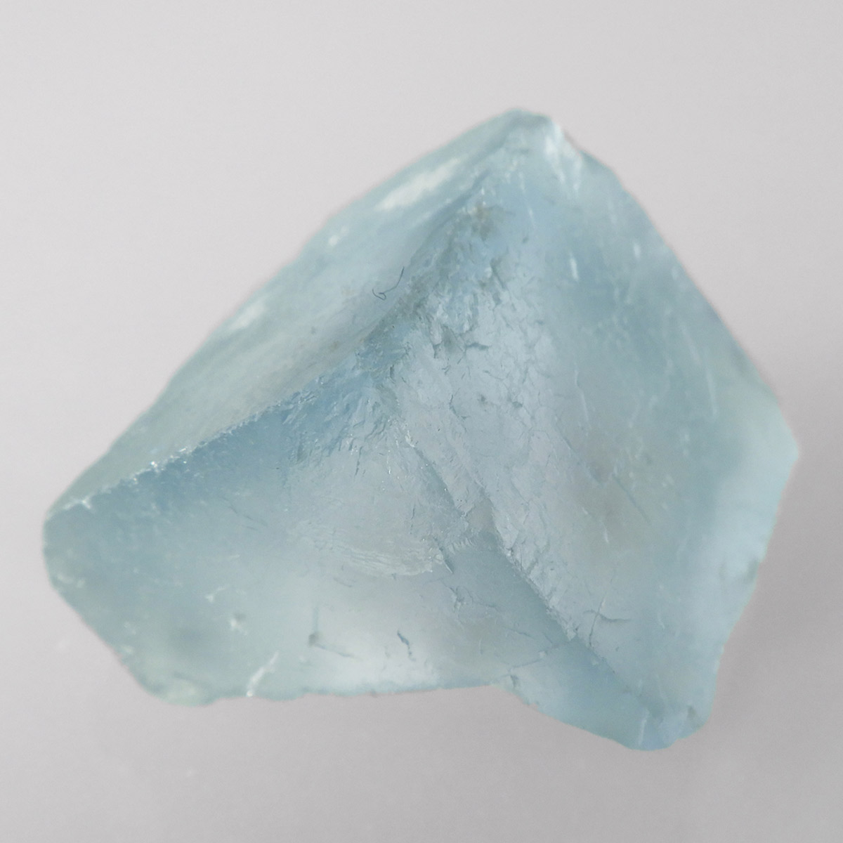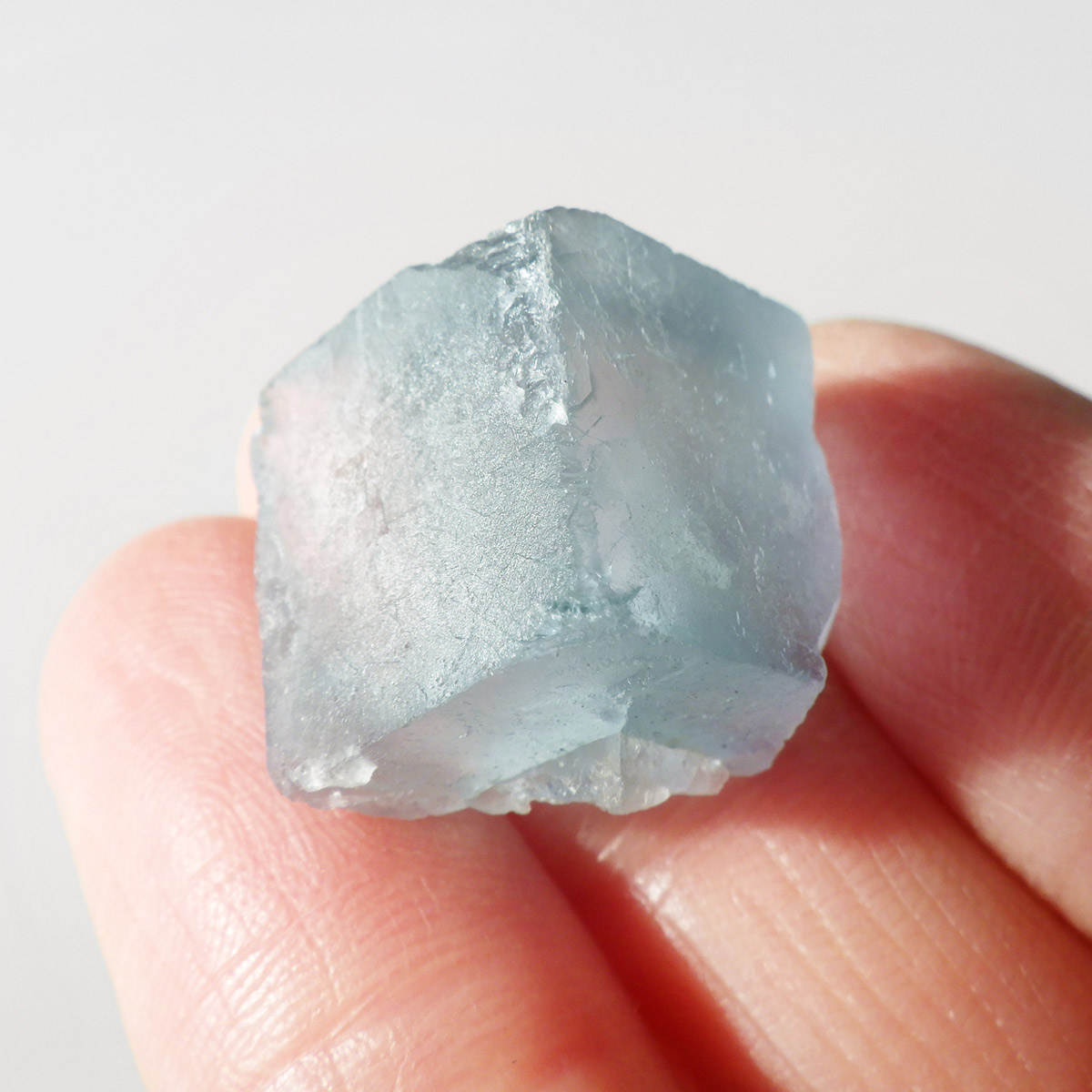 カラーの豊富なフローライトの中でも、特にブルーとイエローは希少性が高いことで知られています。ニューメキシコ州産のブルーフローライトは、マットで淡く優しいブルーが大変珍しい希少な鉱物です。角度によって色合いが変化し、ブルー、パープル、クリアと結晶のグラデーションが非常に美しいです。淡く微妙な奥行きのある色彩を写真で表現するのが難しかったのですが、かわいらしくて綺麗ですのでおすすめです。