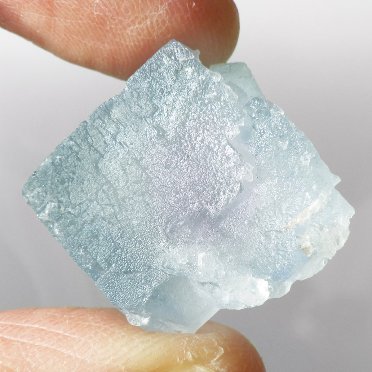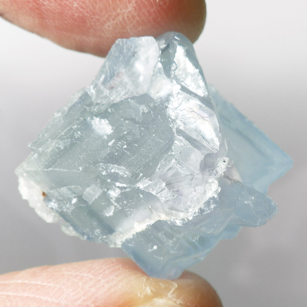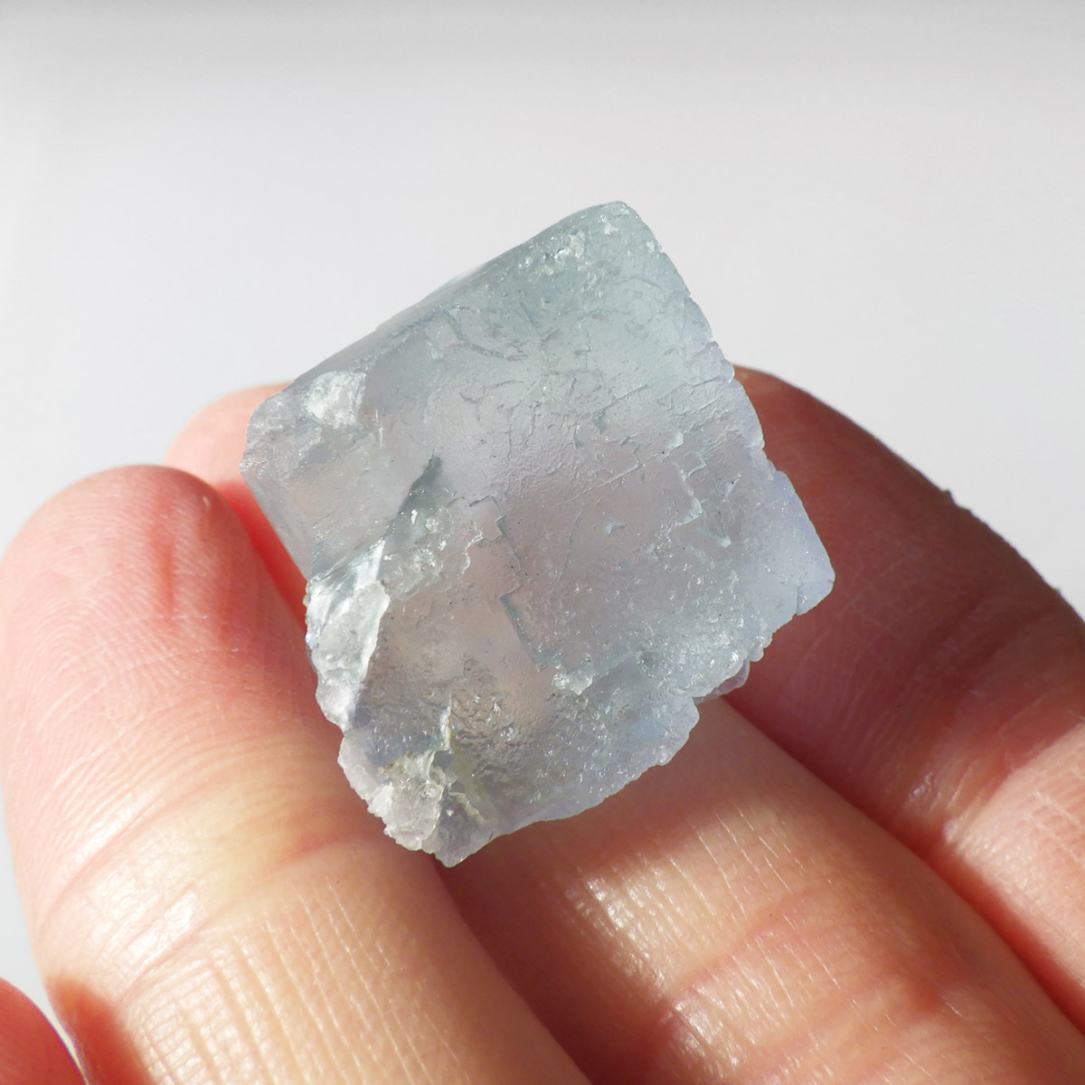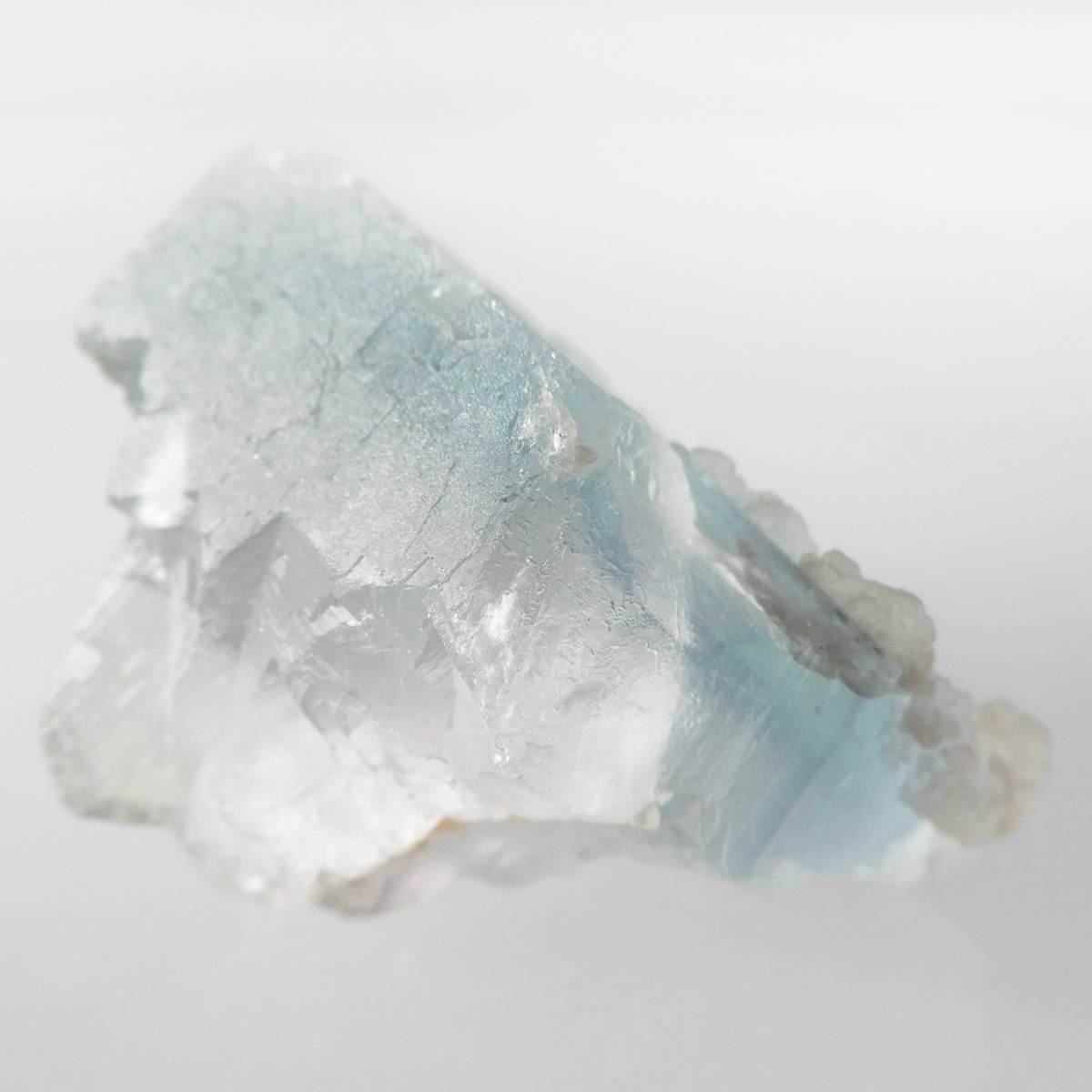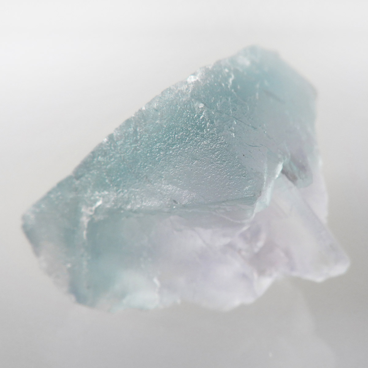 カラーの豊富なフローライトの中でも、特にブルーとイエローは希少性が高いことで知られています。ニューメキシコ州産のブルーフローライトは、マットで淡く優しいブルーが大変珍しい希少な鉱物です。角度によって色合いが変化し、ブルー、パープル、クリアと結晶のグラデーションが非常に美しいです。淡く微妙な奥行きのある色彩を写真で表現するのが難しかったのですが、かわいらしくて綺麗ですのでおすすめです。