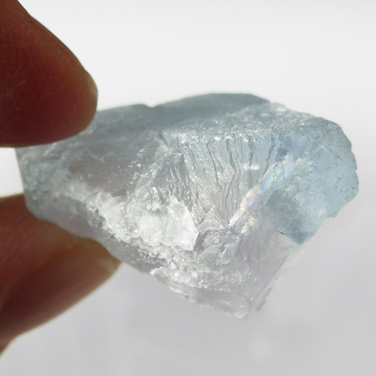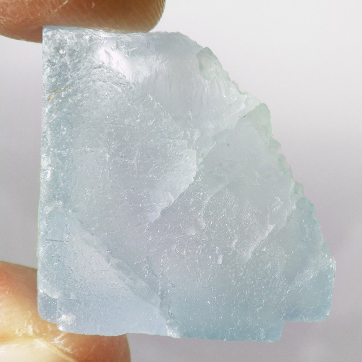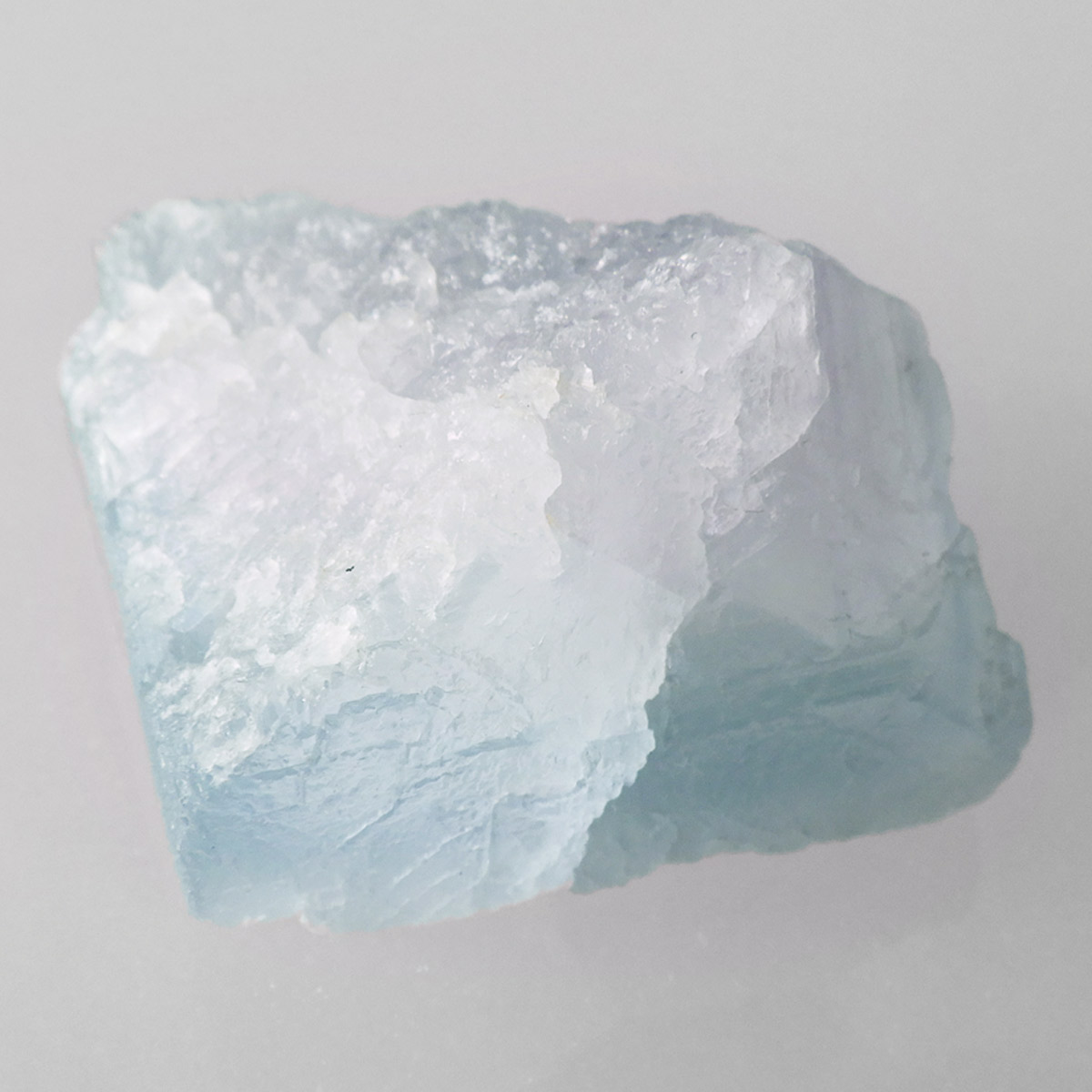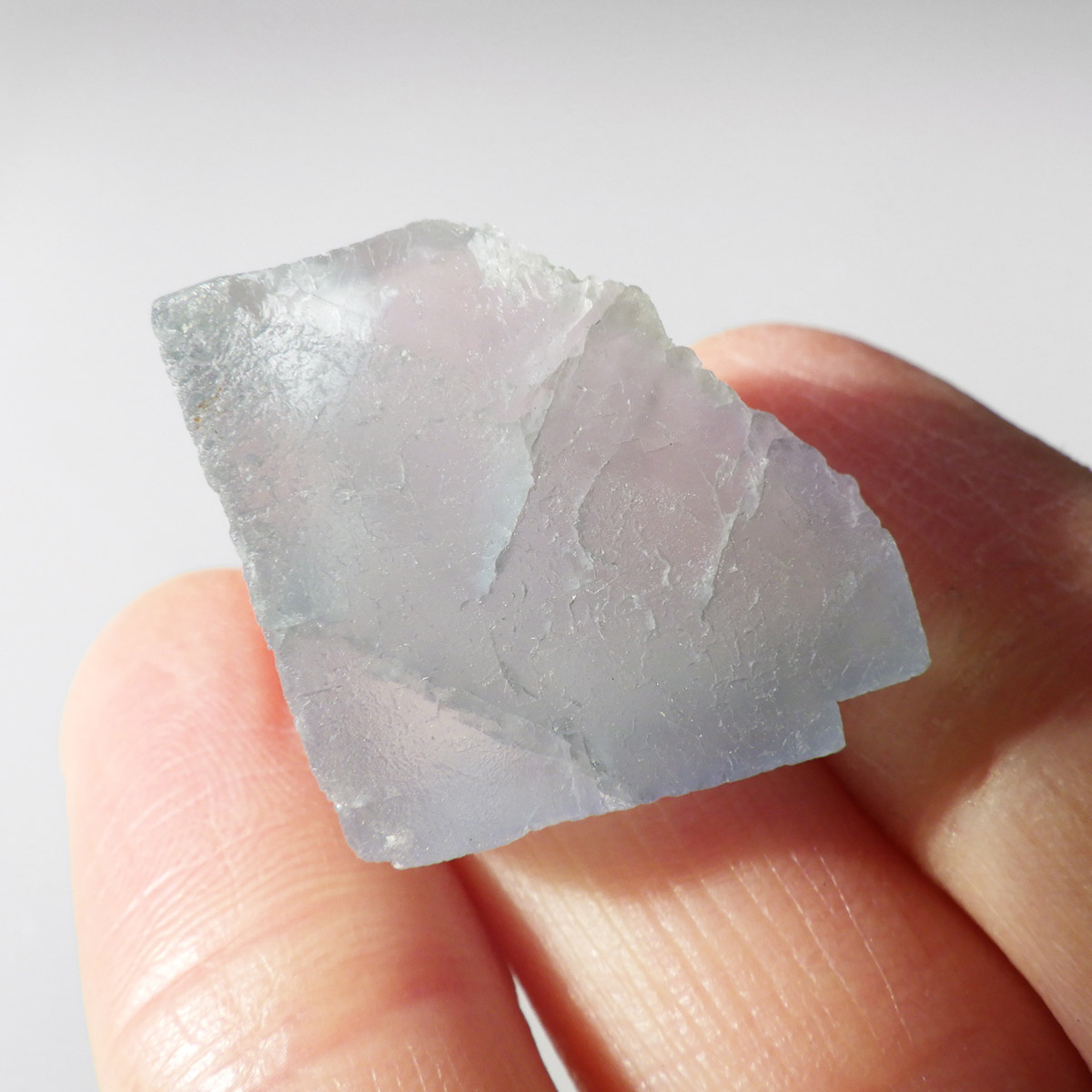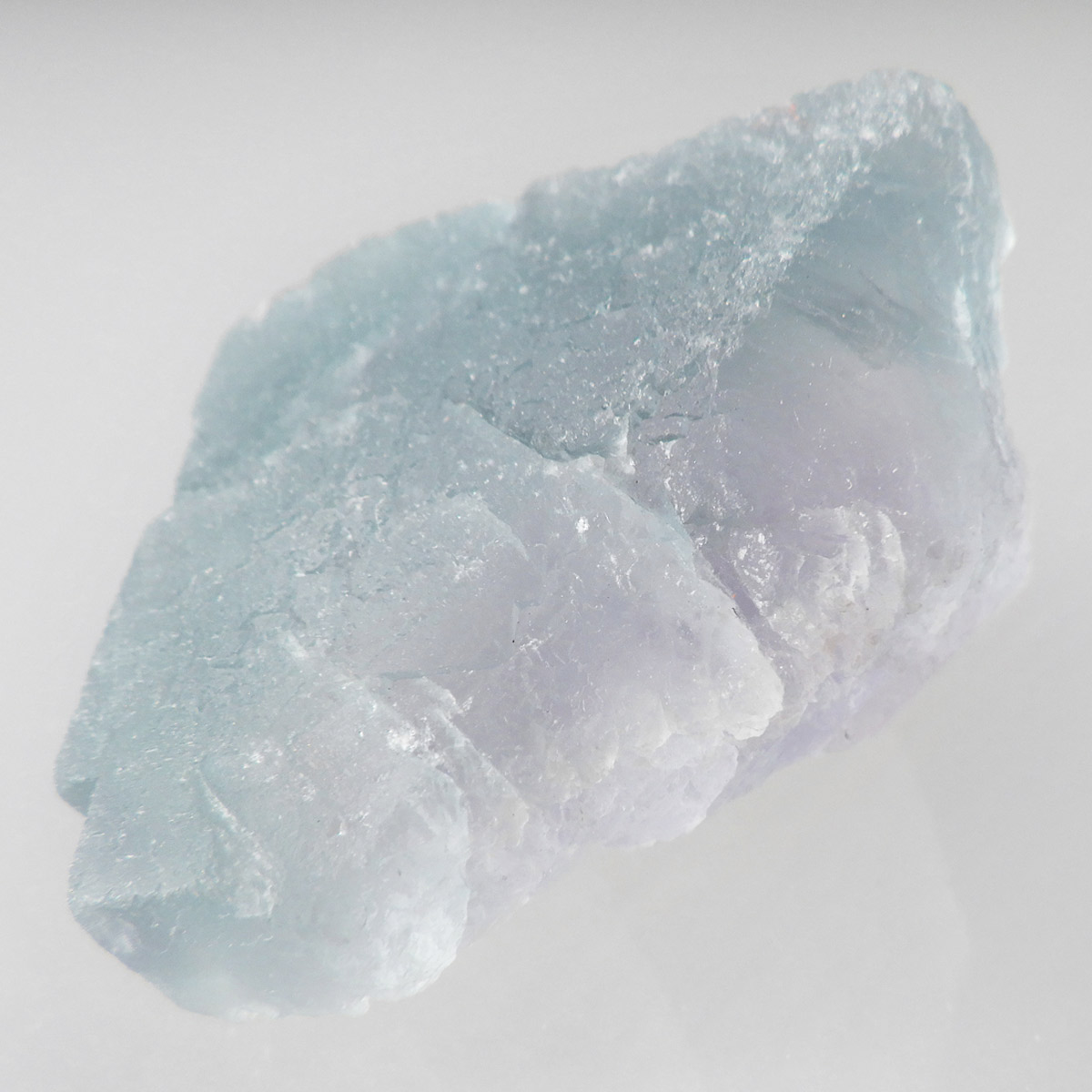 カラーの豊富なフローライトの中でも、特にブルーとイエローは希少性が高いことで知られています。ニューメキシコ州産のブルーフローライトは、マットで淡く優しいブルーが大変珍しい希少な鉱物です。角度によって色合いが変化し、ブルー、パープル、クリアと結晶のグラデーションが非常に美しいです。淡く微妙な奥行きのある色彩を写真で表現するのが難しかったのですが、かわいらしくて綺麗ですのでおすすめです。
