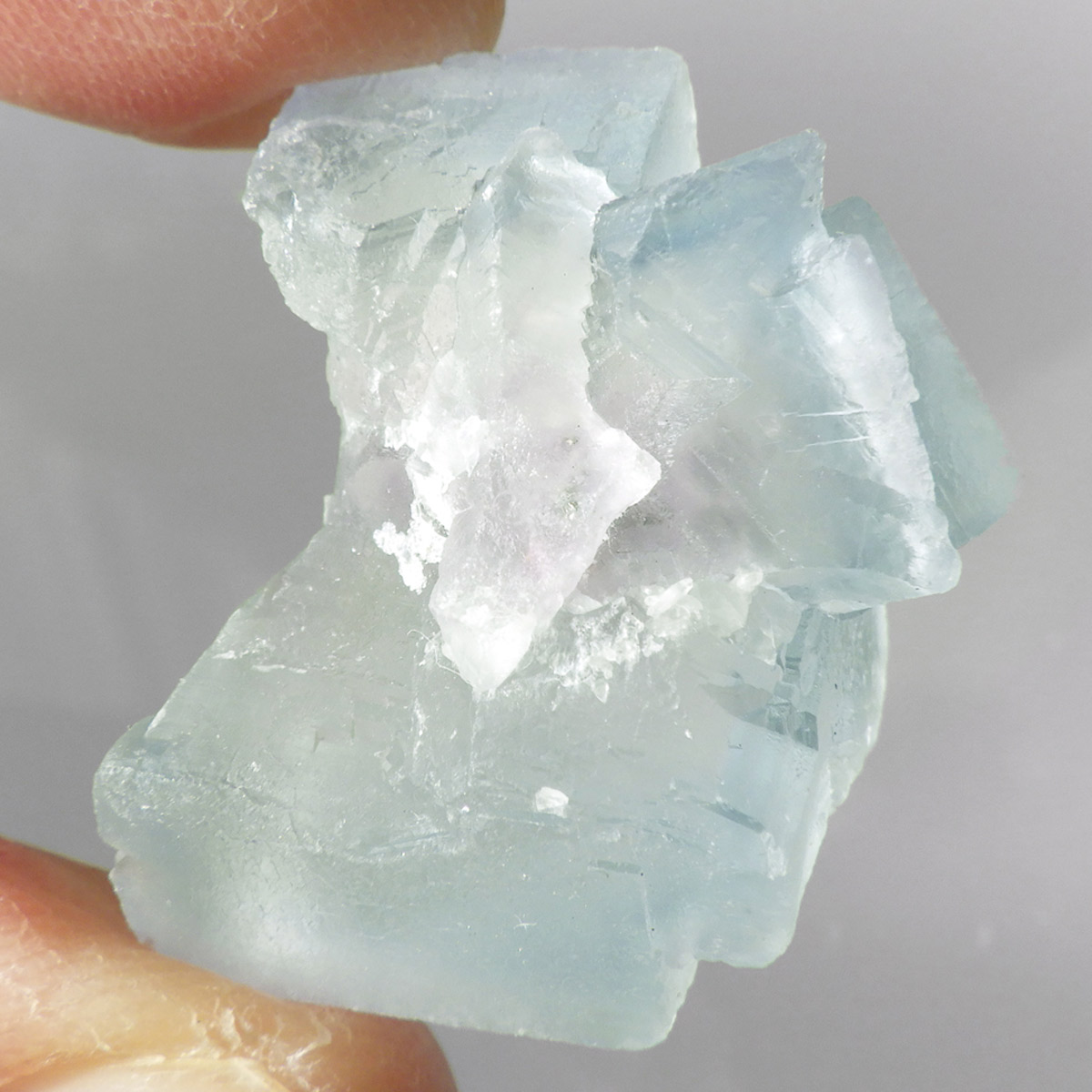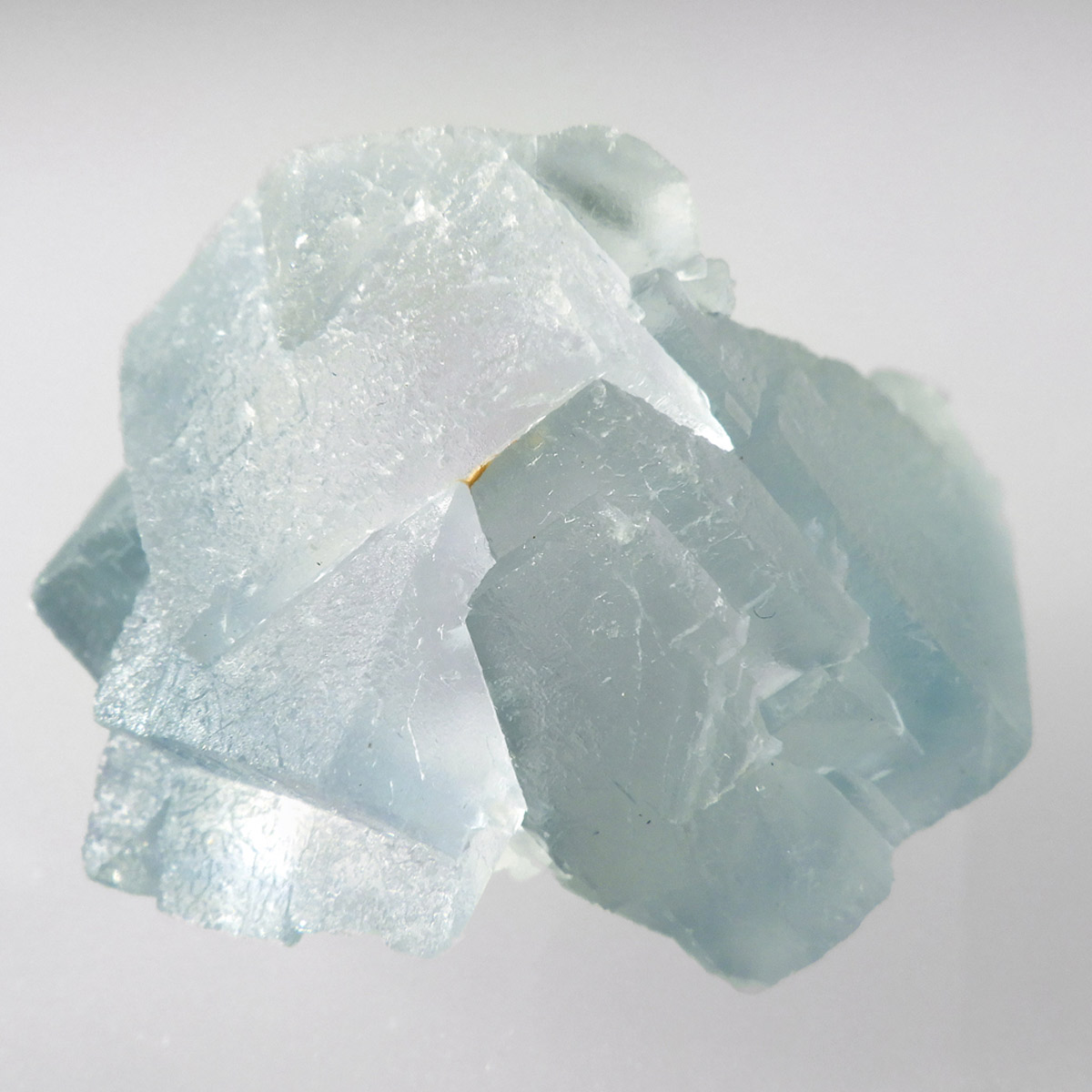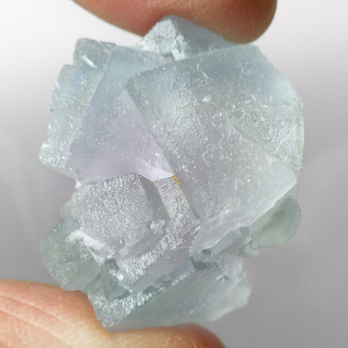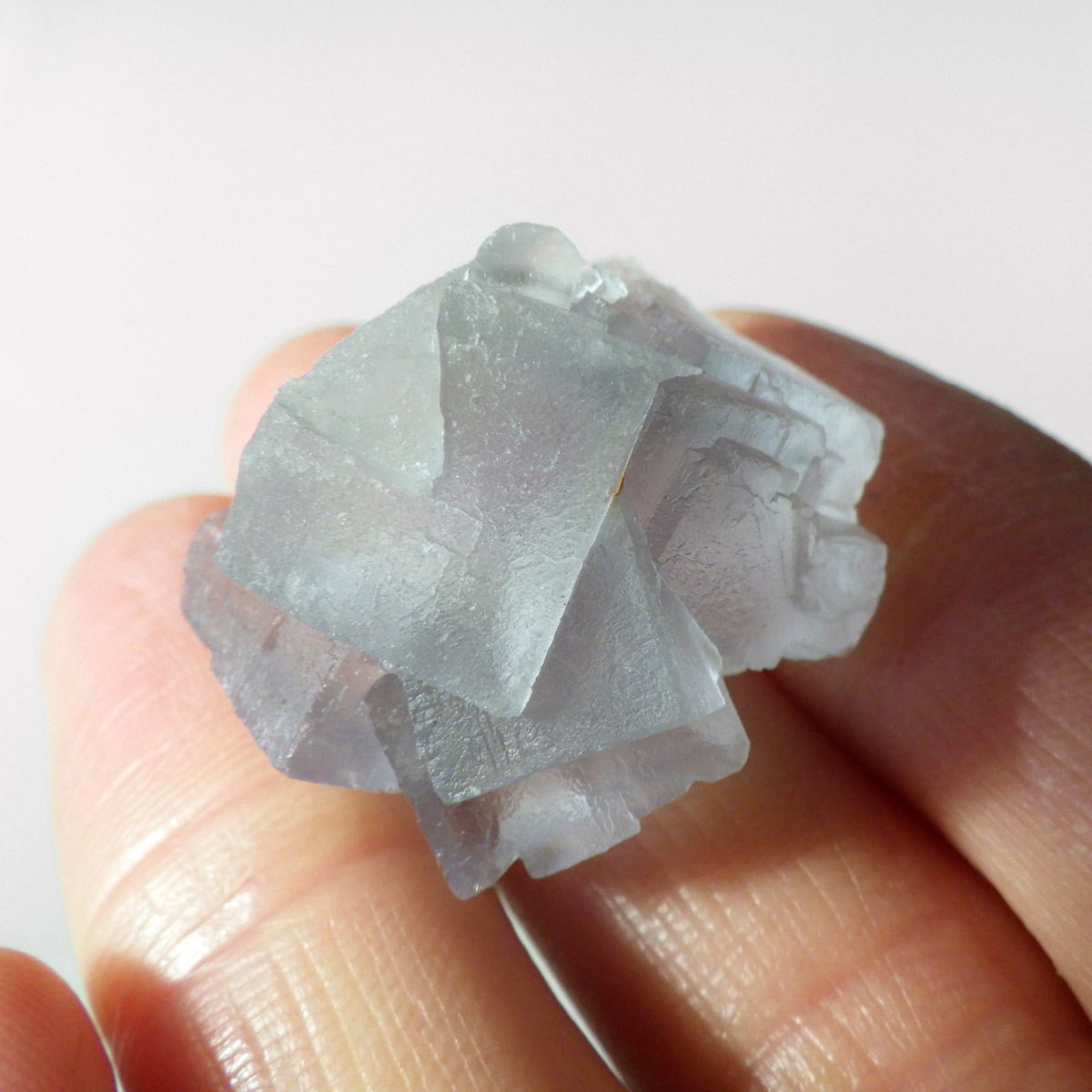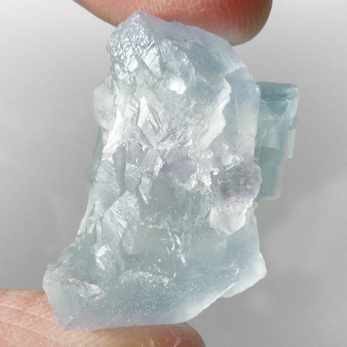 カラーの豊富なフローライトの中でも、特にブルーとイエローは希少性が高いことで知られています。ニューメキシコ州産のブルーフローライトは、マットで淡く優しいブルーが大変珍しい希少な鉱物です。角度によって色合いが変化し、ブルー、パープル、クリアと結晶のグラデーションが非常に美しいです。淡く微妙な奥行きのある色彩を写真で表現するのが難しかったのですが、かわいらしくて綺麗ですのでおすすめです。