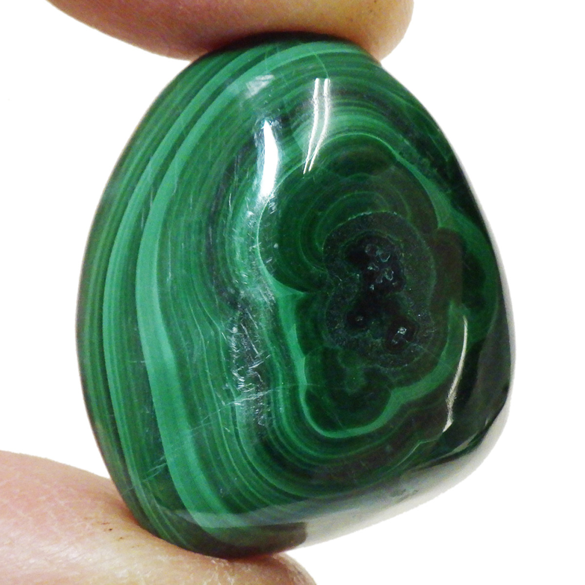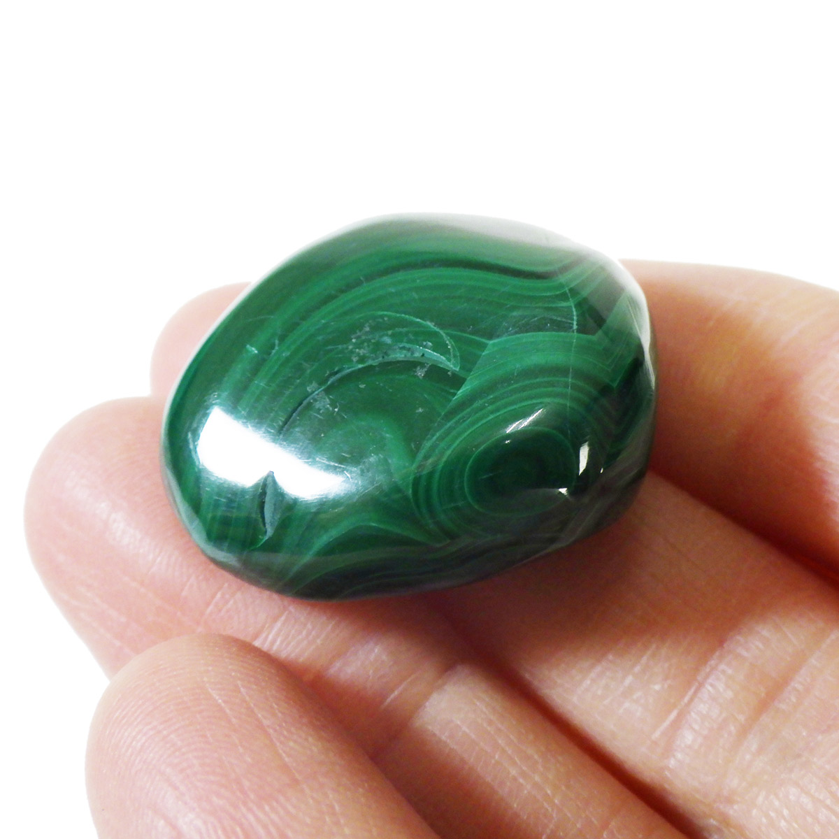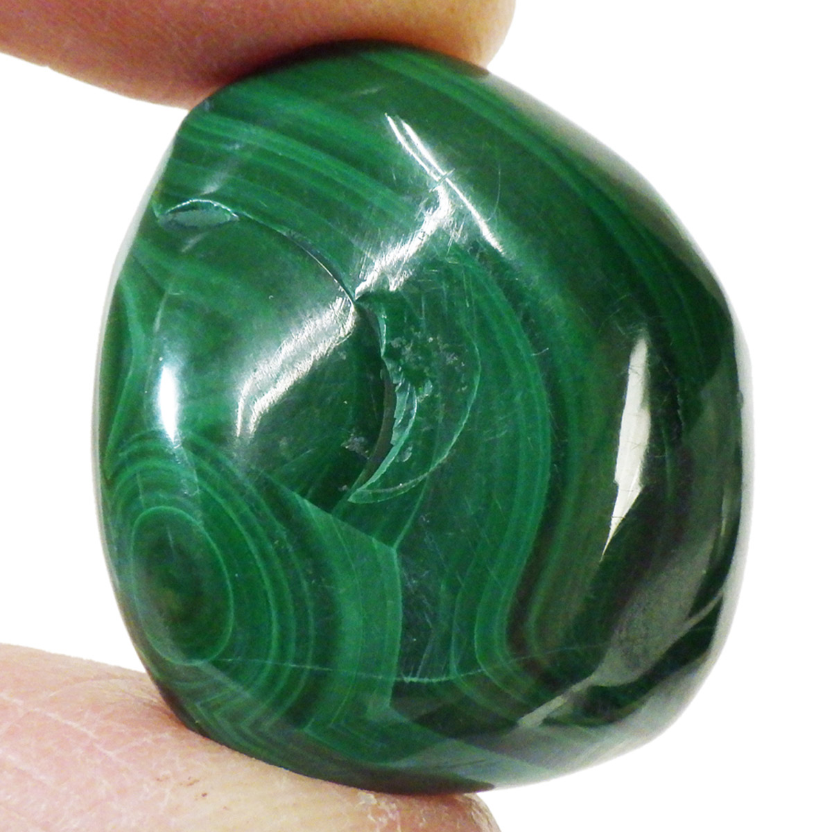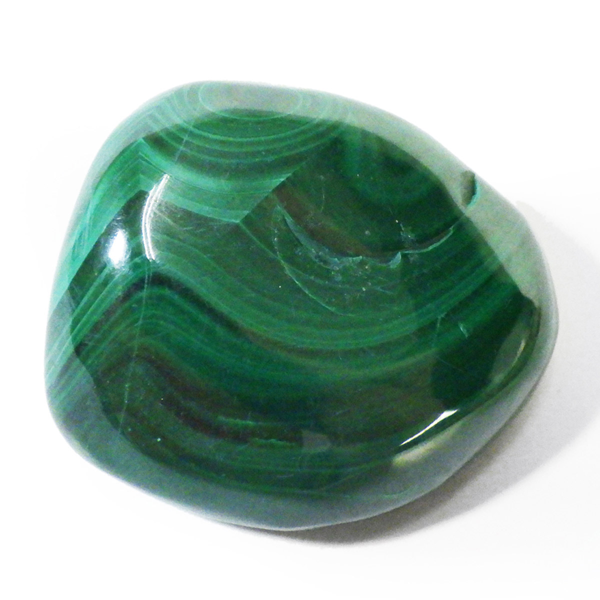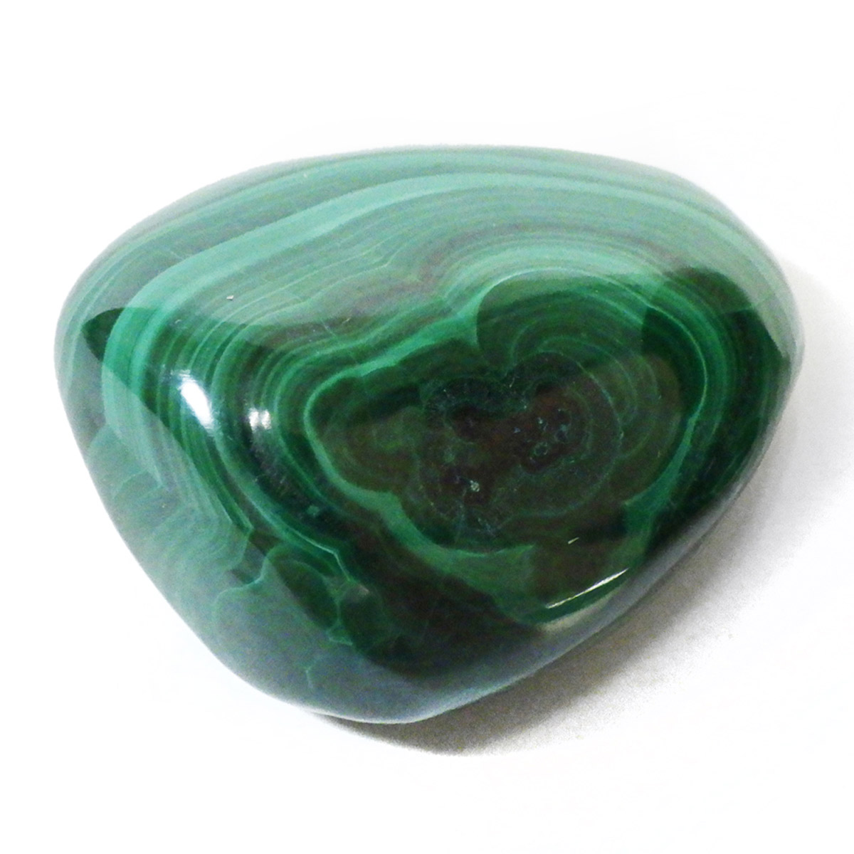 コンゴ産のマラカイト、タンブルです。濃いグリーンカラーに独特の模様を持つマラカイト。 「マラカイトグリーン」という色名になっているほど、特徴的で美しい緑色です。 マラカイトの産地はアメリカ・ロシア・コンゴ・ザンビアなどですが、中でもコンゴ産のマラカイトは非常に美しいものが採れるため、コレクターからも支持されています。