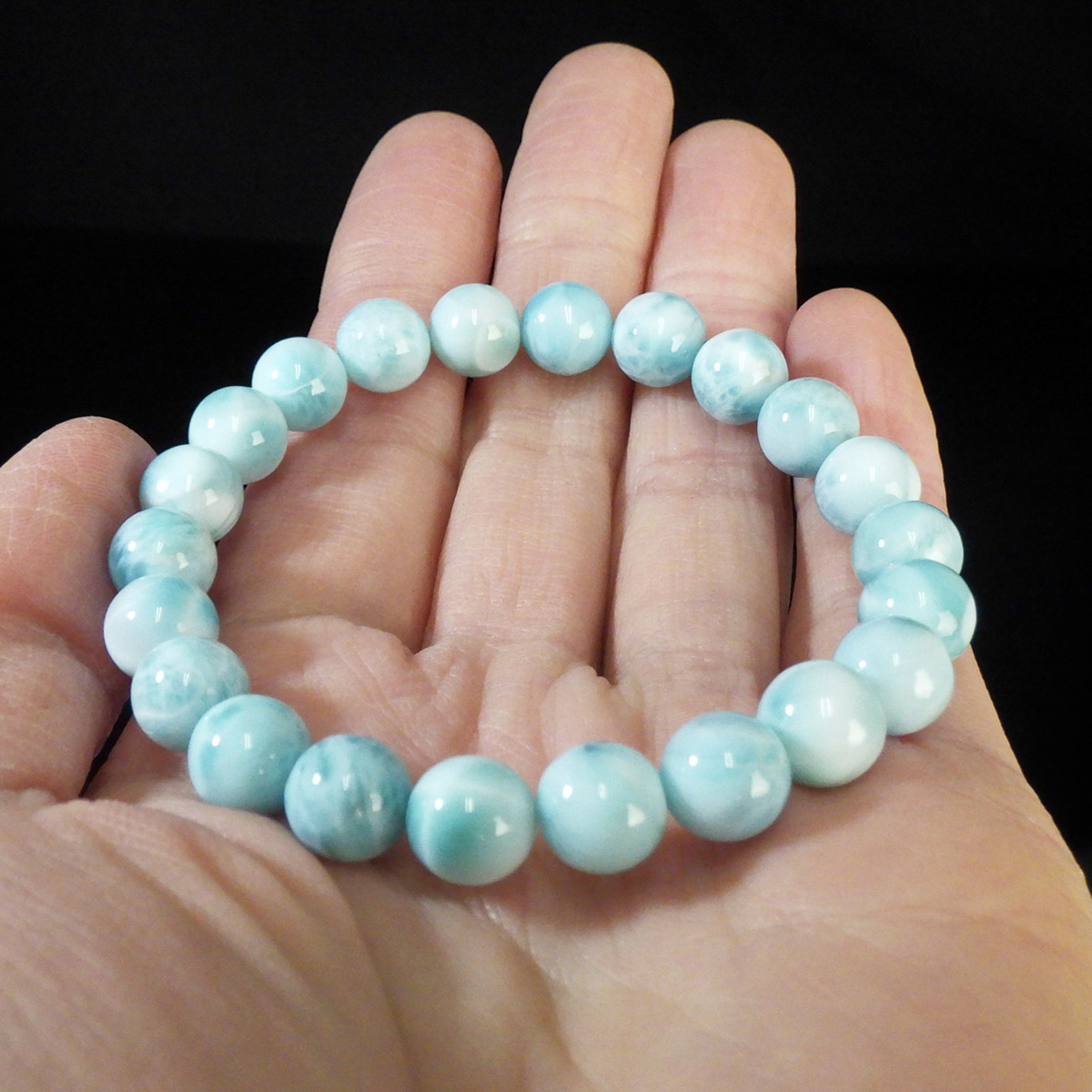 ラリマー ブレスレット ドミニカ共和国産 9mm玉×22個 内周17.5cm