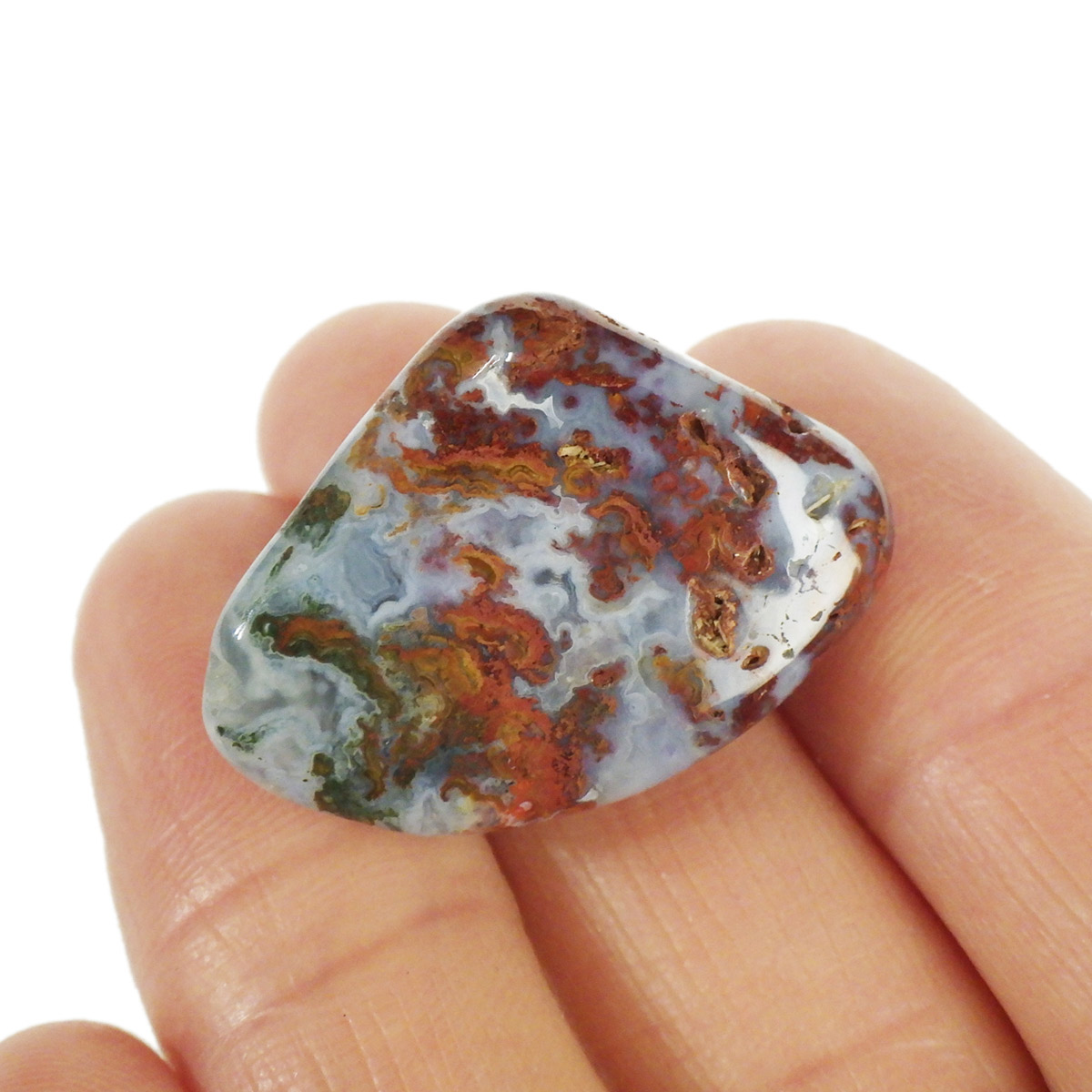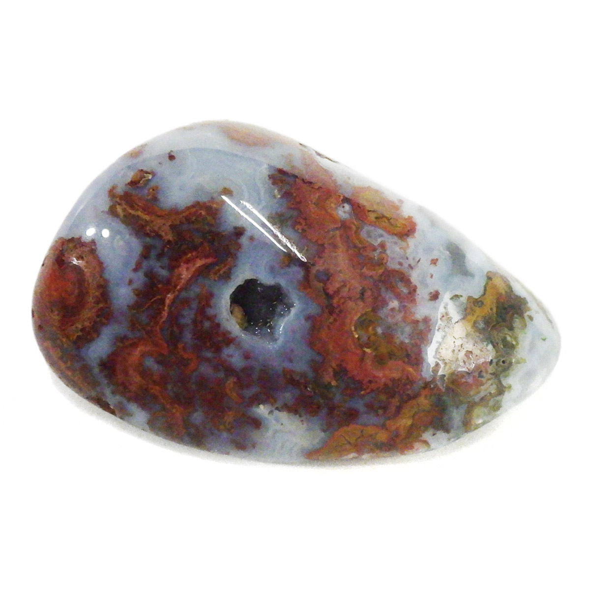 ハンガリー産ハンガリーアゲート、タンブルです。ハンガリーアゲートは、比較的新しく見つかった石で、大変レアな鉱物です。レッド・ブルー・ブラウン・ブラック・グリーンなど、成分によって色彩豊かな事が特長です。酸化するほどレッドが強くなっていきます。