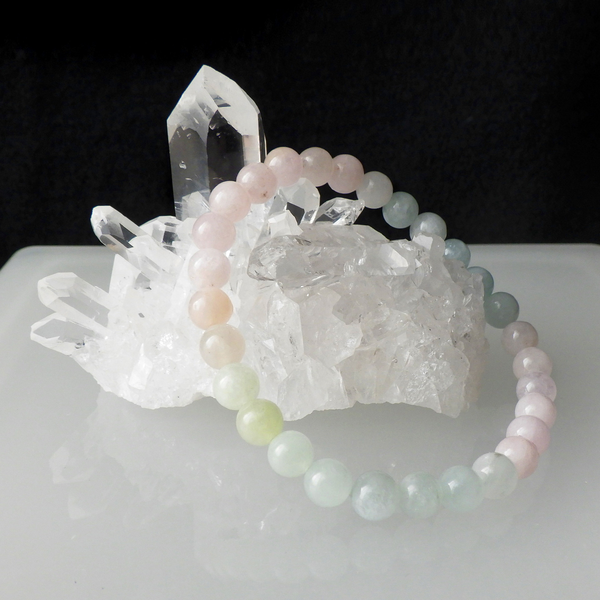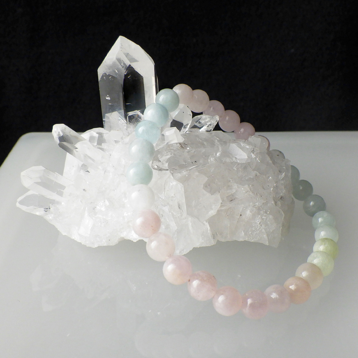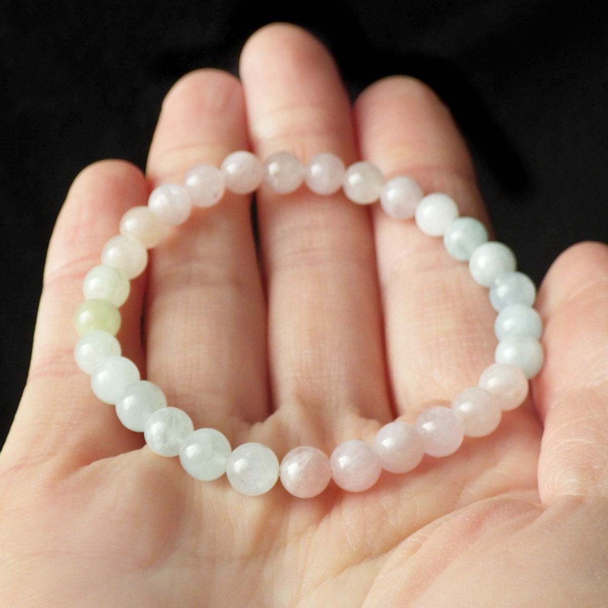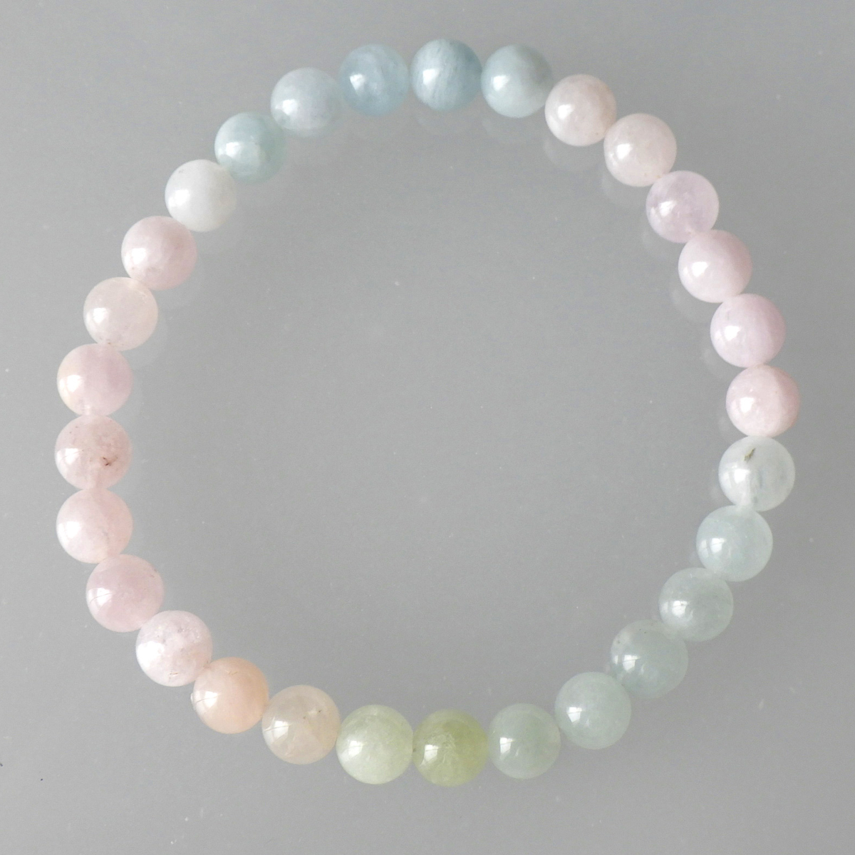 ミックスベリル ブレスレット 6mm玉×29個 内周15.5cm