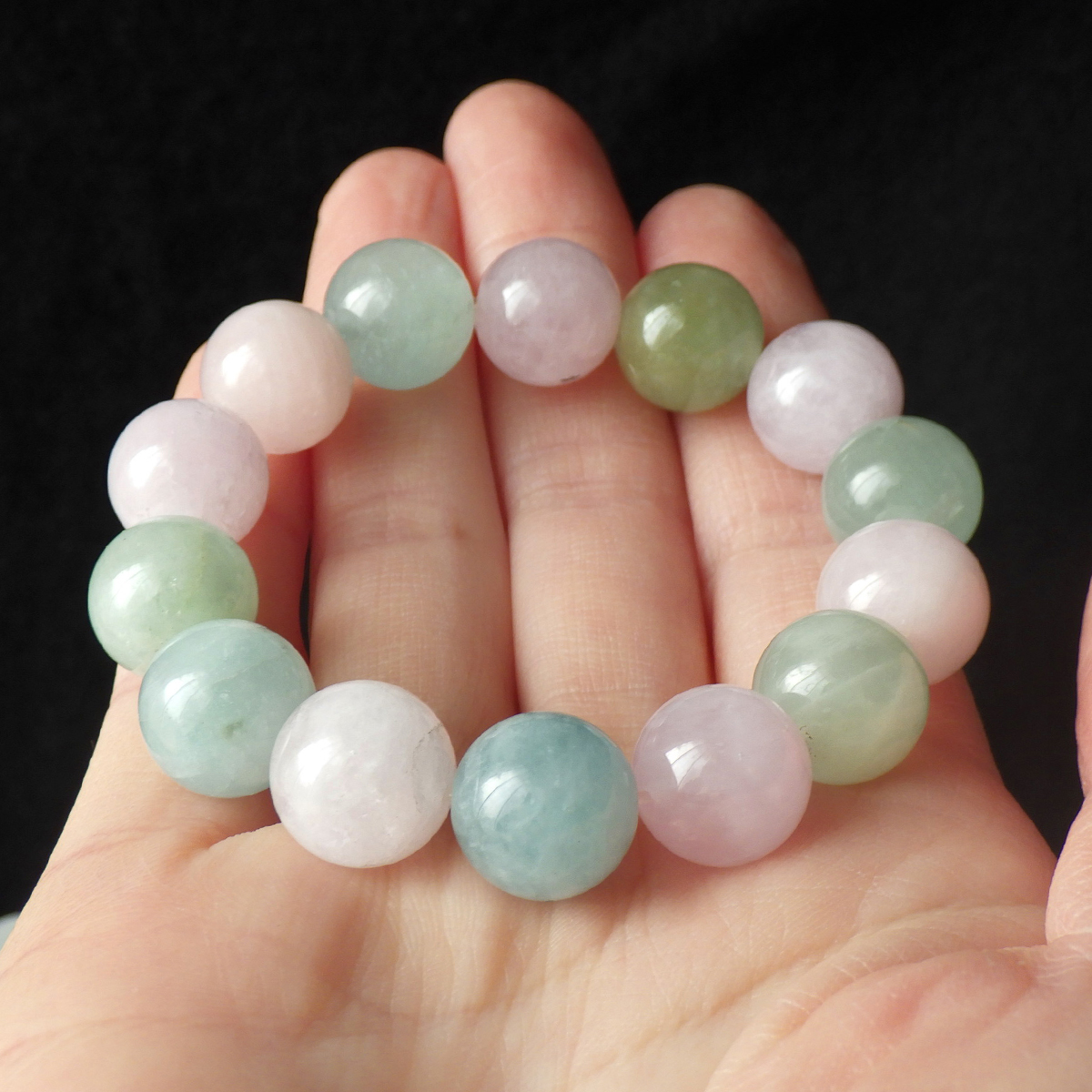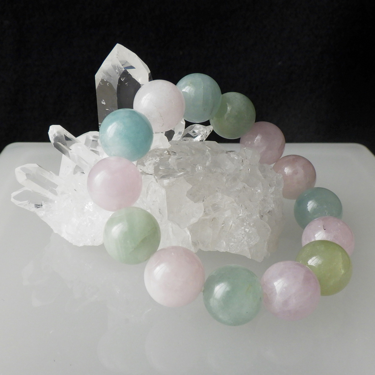 ミックスベリル ブレスレット 13mm玉×14個 内周14cm