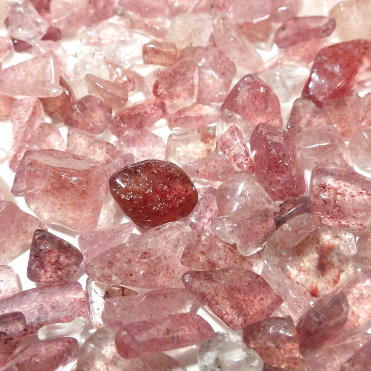 ピンクエピドートインクォーツのさざれ石50gセットです。 落ち着いたディープレッドのインクルージョンがポツポツと散りばめられた水晶で、見た目にもかわいらしいです。 手ごろな大きさの器に入れて、アクセサリーや石を休ませる「パワーストーン置き場」としてお使い頂けます。