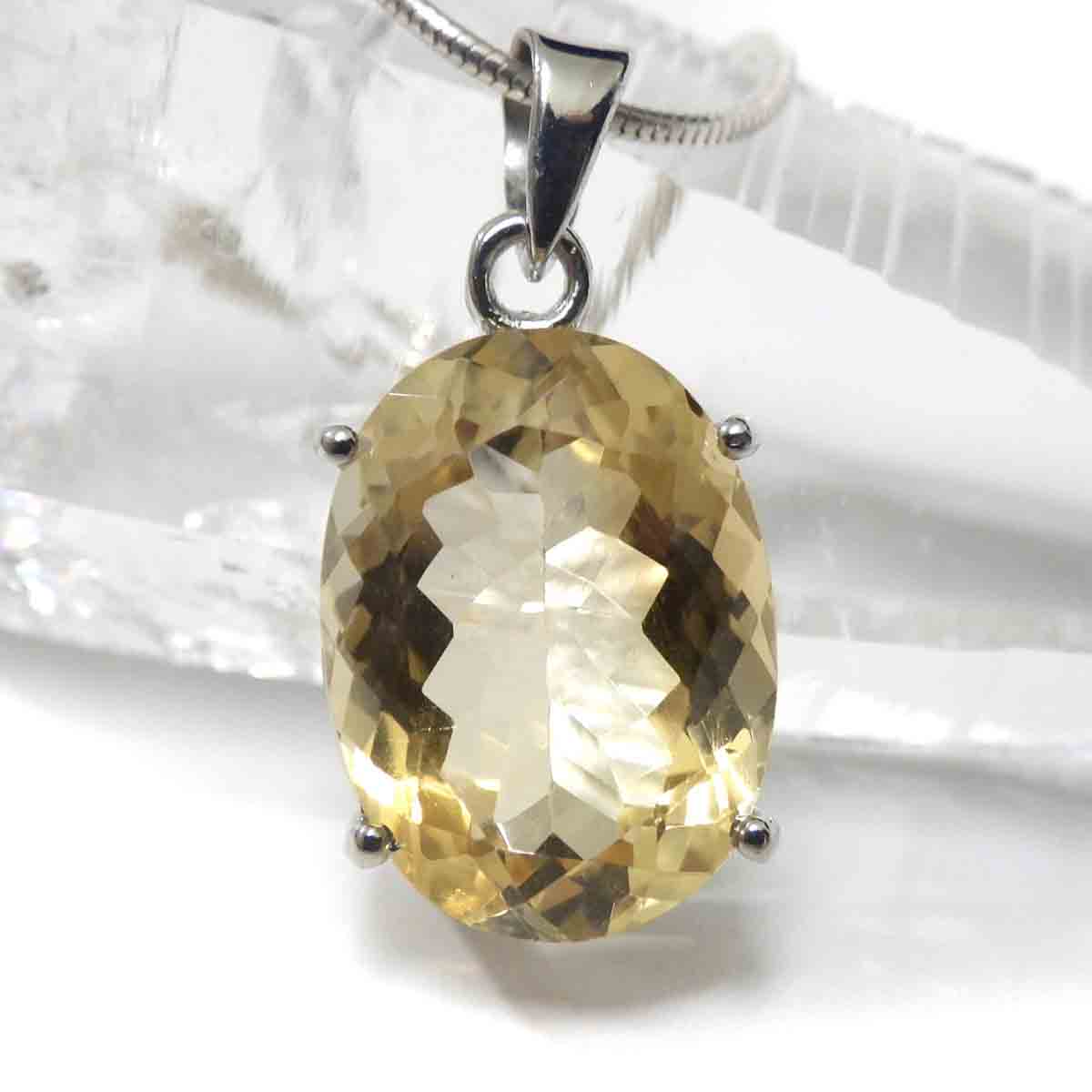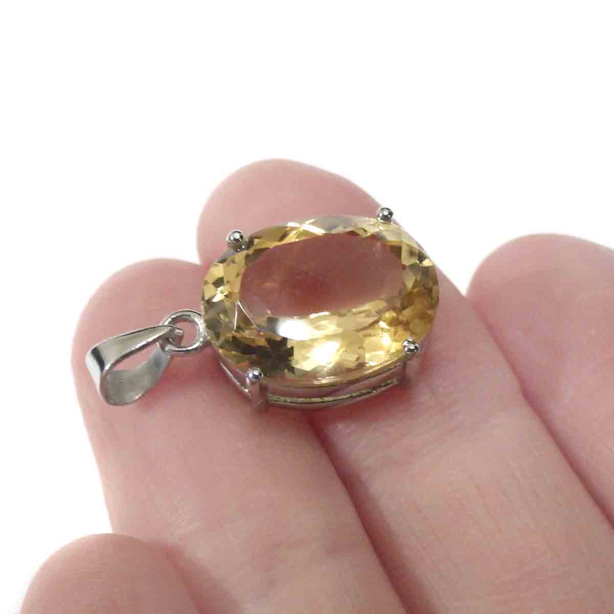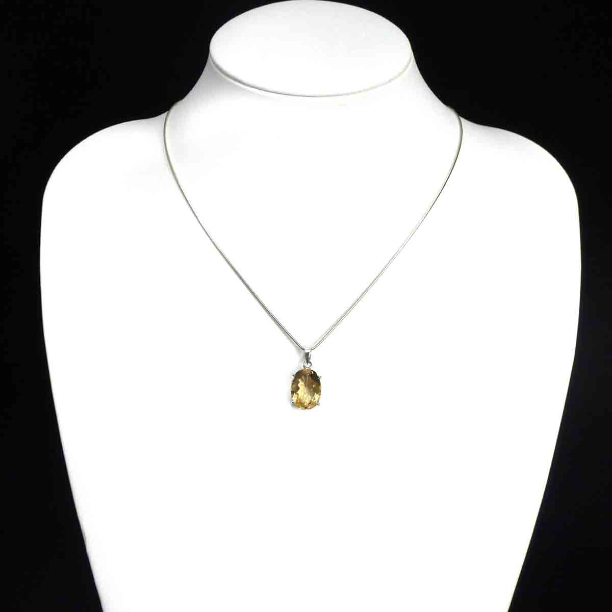 ブラジル産オーバルファセットカットのシトリンペンダントトップです。 宝石質で透明度が高く、発色も素晴らしく、自然な癒されるイエローの良質なシトリンです。オーバルファセットカットとは、楕円形の多面体カットのことで、シトリンの美しさを最大限に引き出しています。※チェーンは別売りです。