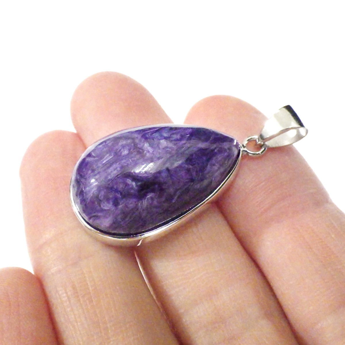 はっきりとしたマーブル模様が浮き上がった最高品質のチャロアイトペンダントトップです。