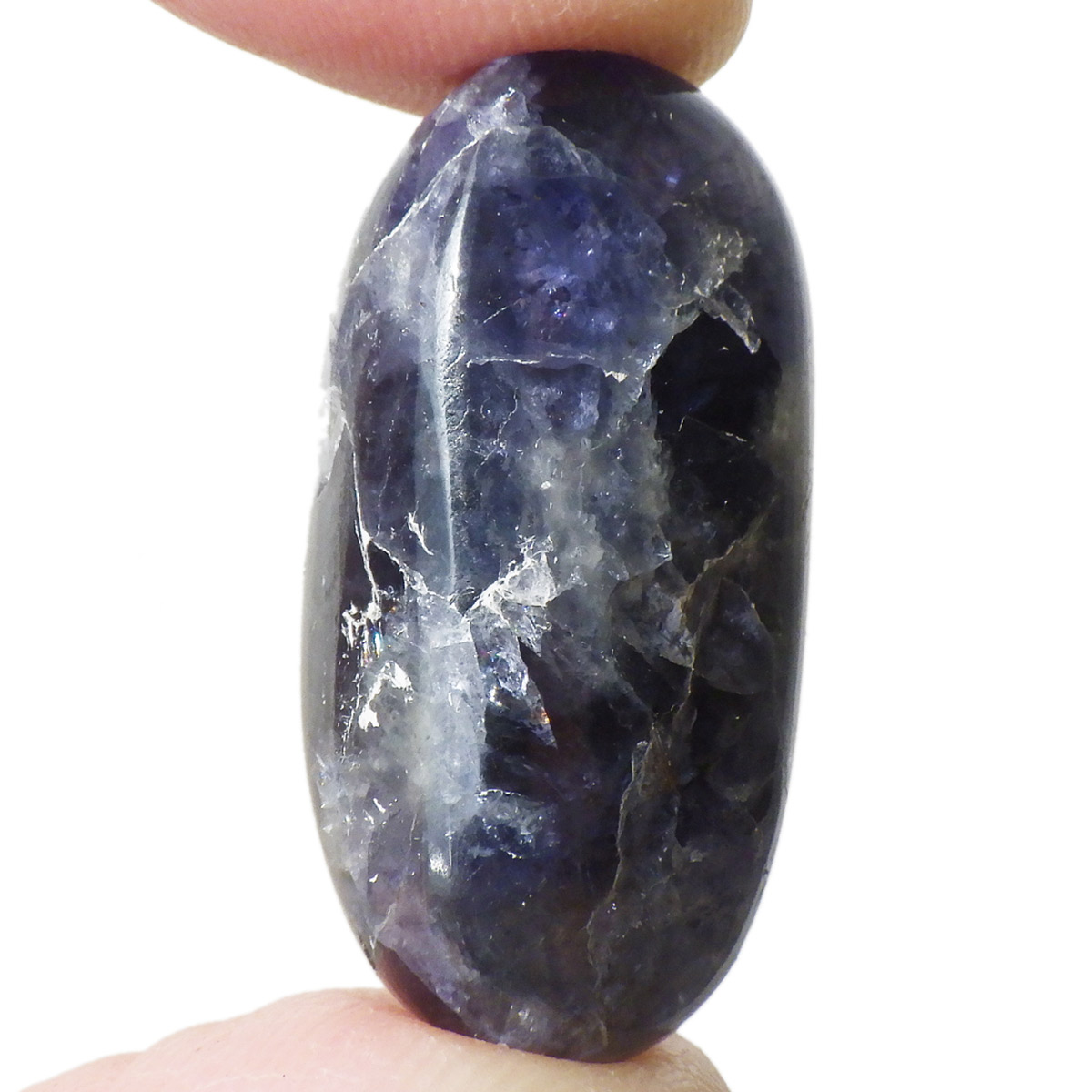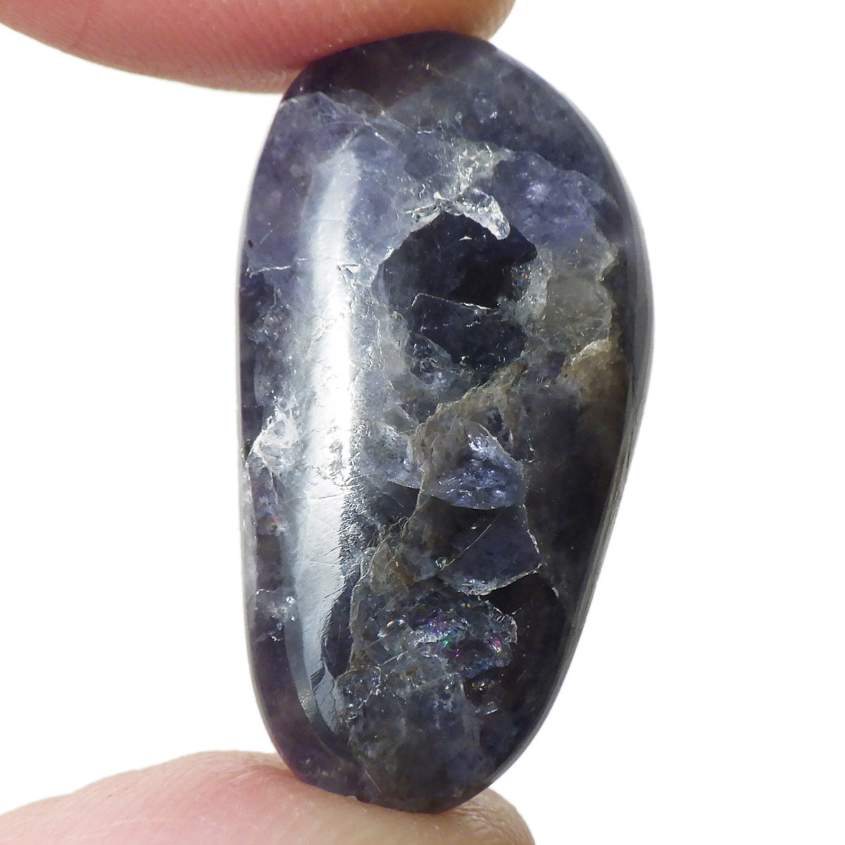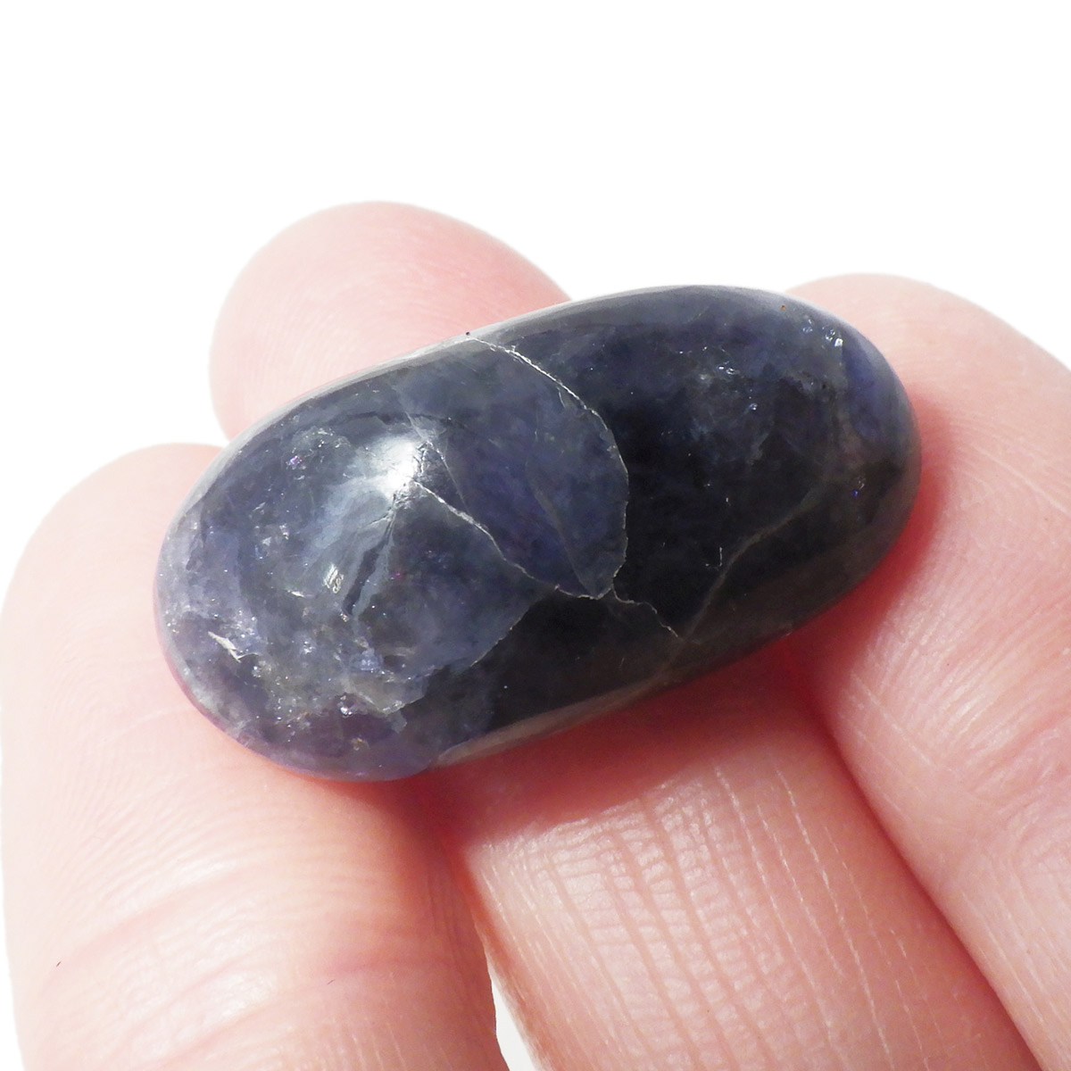インド産のAAAアイオライト、タンブルです。アイオライトは見る角度によって色が変化するという神秘的な鉱石です。広域変成岩や接触変成岩などで発見されるケイ酸塩鉱物の一種で、多色性が強く、見る角度によって群青色から淡い枯れ草色に変化します。アイオライトの中でも、透明感があり、発色の良い大変グレードの高い希少なものをご用意しました。