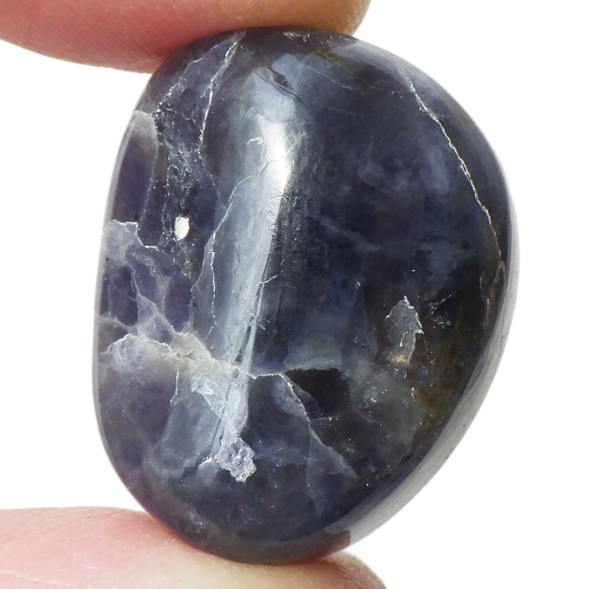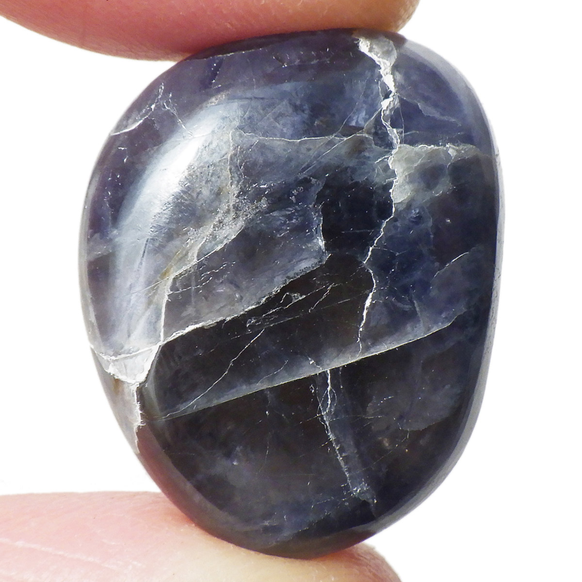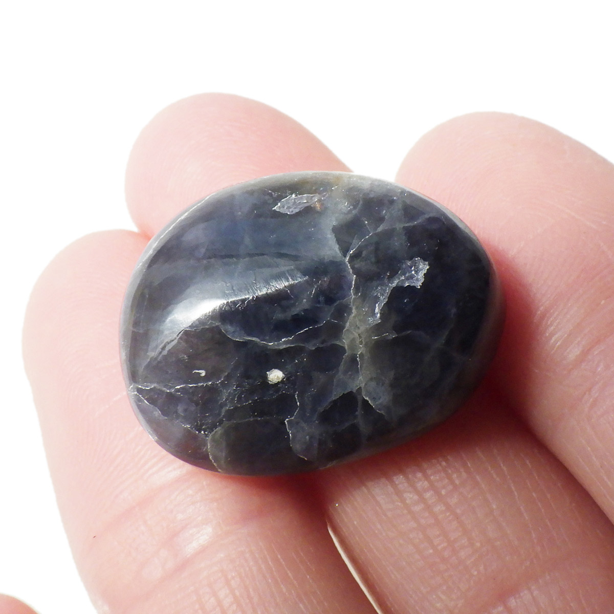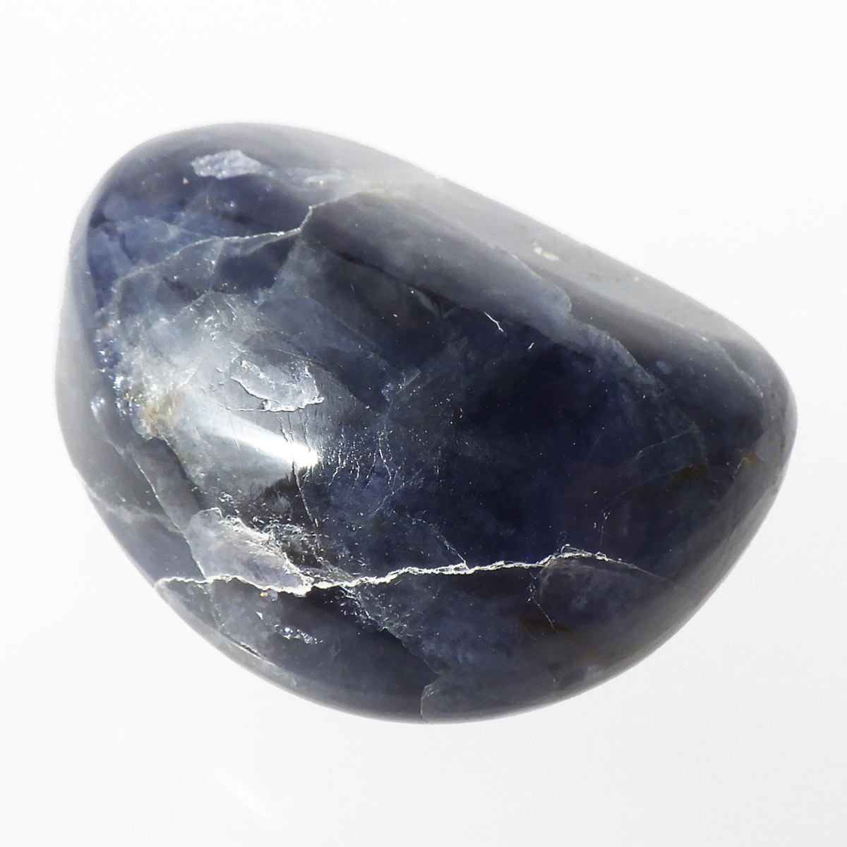 インド産のAAAアイオライト、タンブルです。アイオライトは見る角度によって色が変化するという神秘的な鉱石です。広域変成岩や接触変成岩などで発見されるケイ酸塩鉱物の一種で、多色性が強く、見る角度によって群青色から淡い枯れ草色に変化します。アイオライトの中でも、透明感があり、発色の良い大変グレードの高い希少なものをご用意しました。