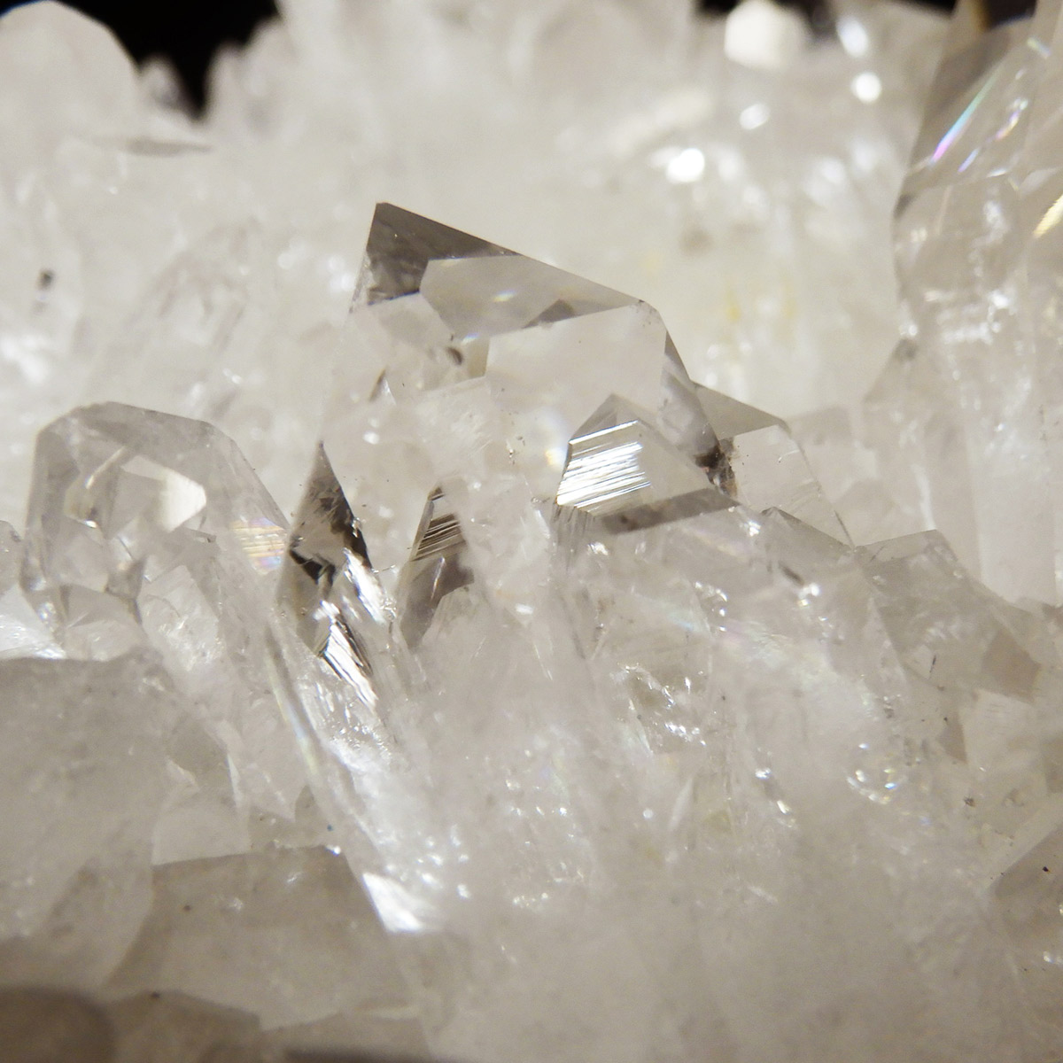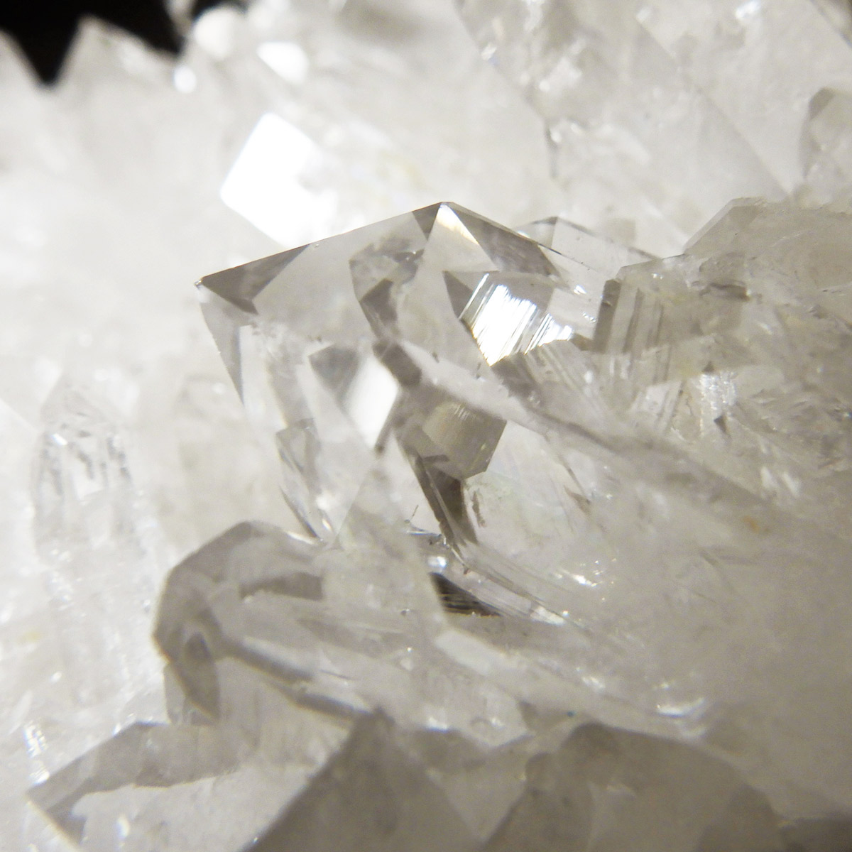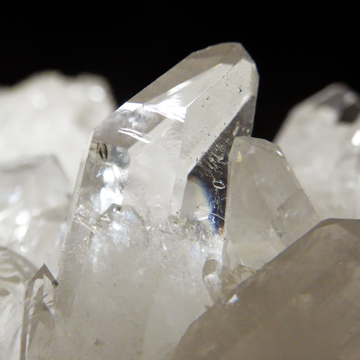 非常に透明度の高い大小様々な結晶が複雑に絡み合い、見る角度によって様々な表情を見せる大変美しいクラスターです。