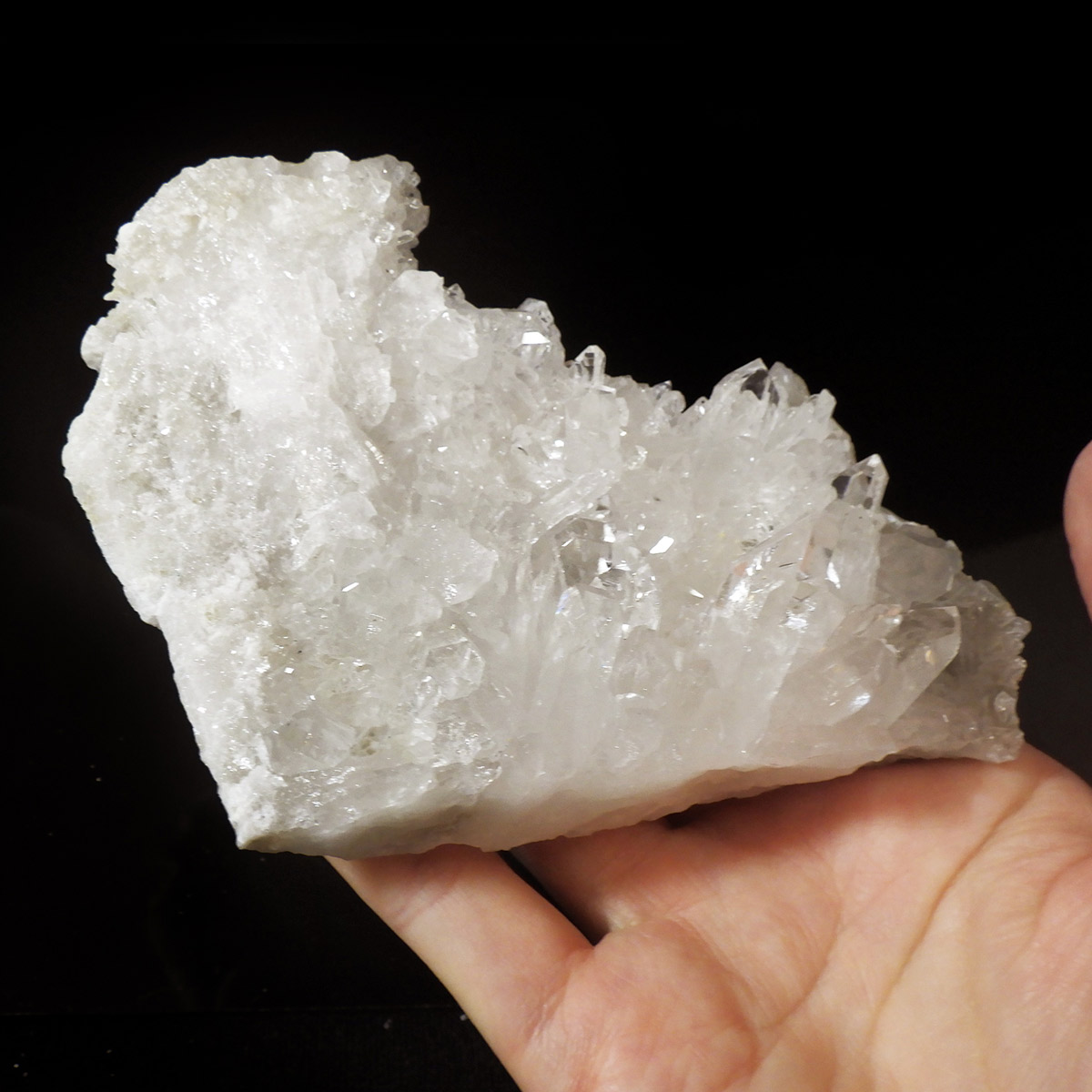 良質な水晶の産地、ブラジル ミナスジェライス州産 の水晶クラスターです。この水晶クラスターの特徴は、照りと艶。光沢が強いため、驚くほどキラキラとしています。