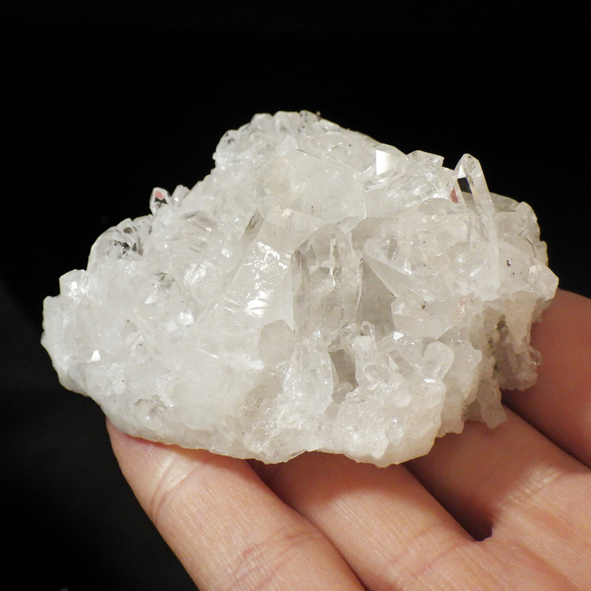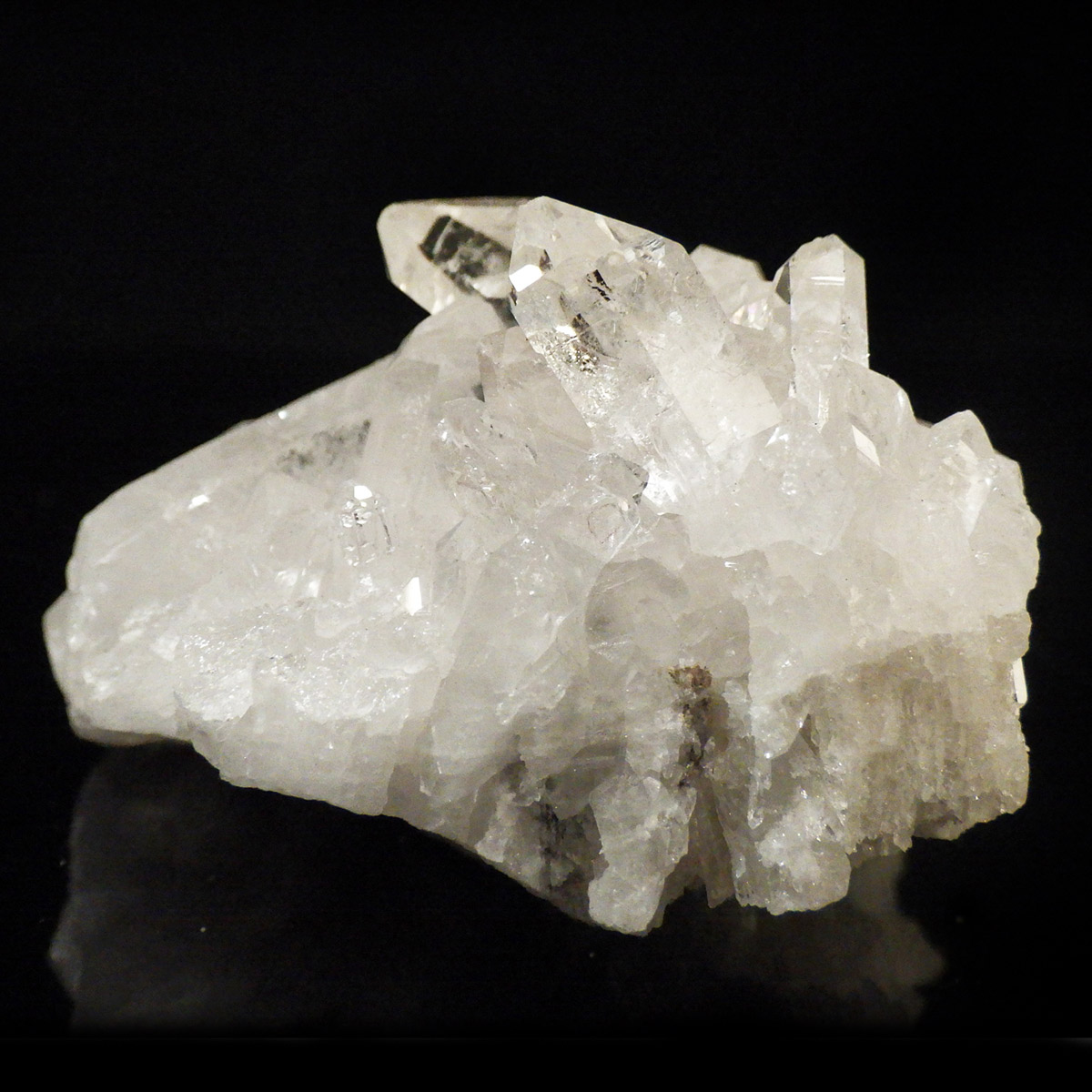 良質な水晶の産地、ブラジル ミナスジェライス州産の水晶クラスターです。この水晶クラスターの特徴は、照りと艶。光沢が強いため、驚くほどキラキラとしています。