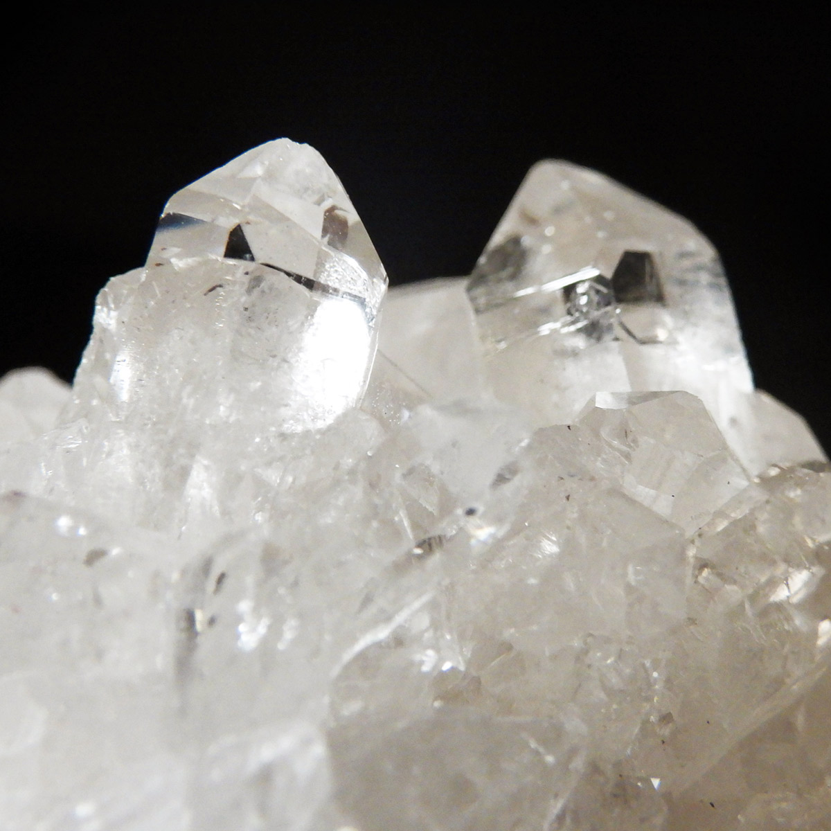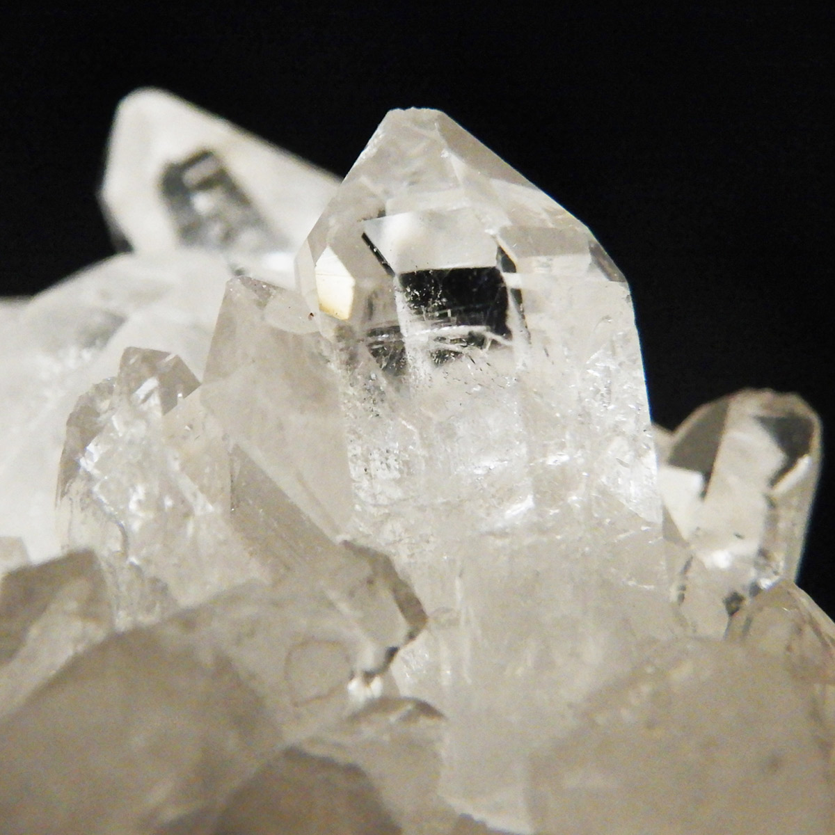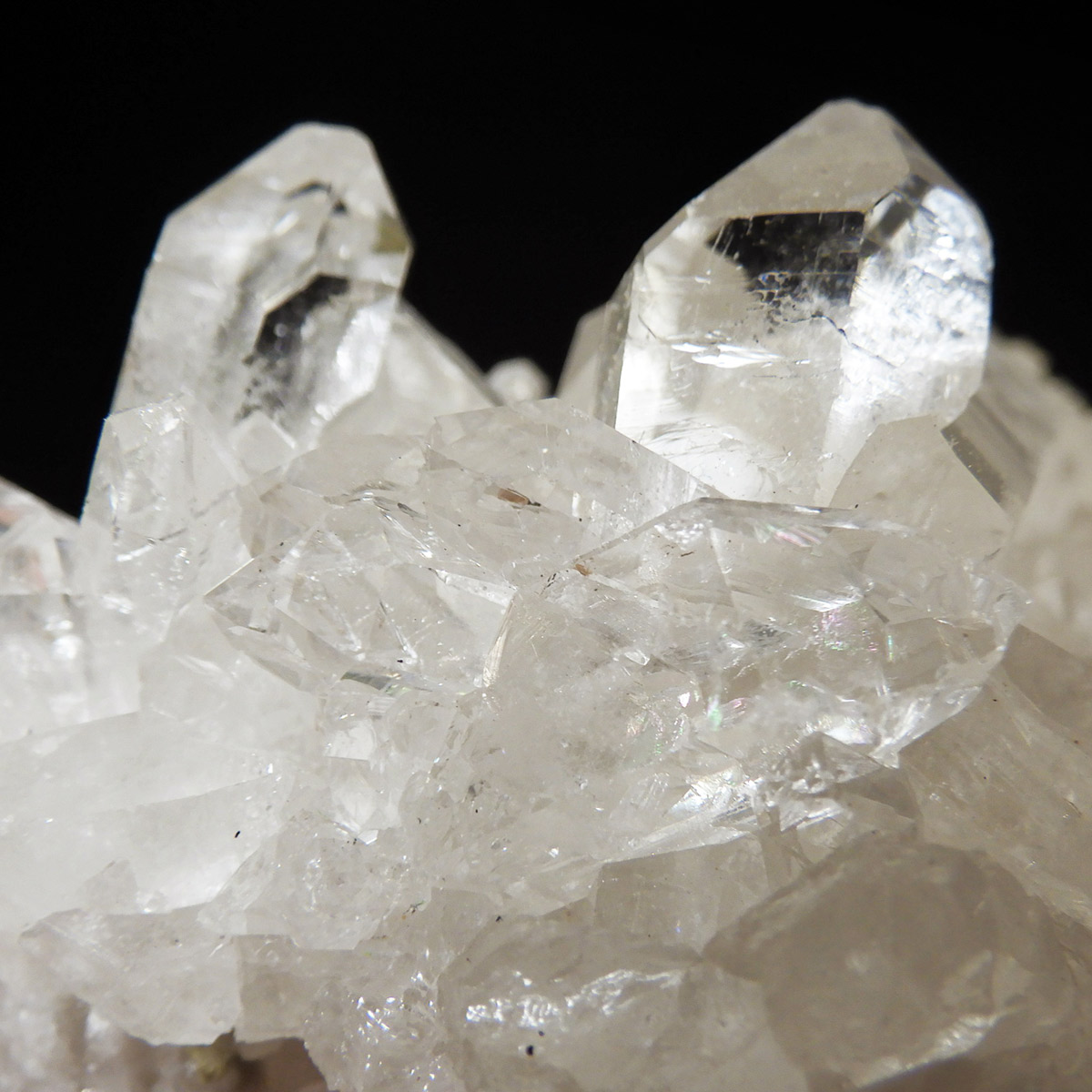 非常に透明度の高い大小様々な結晶が複雑に絡み合い、見る角度によって様々な表情を見せる大変美しいクラスターです。