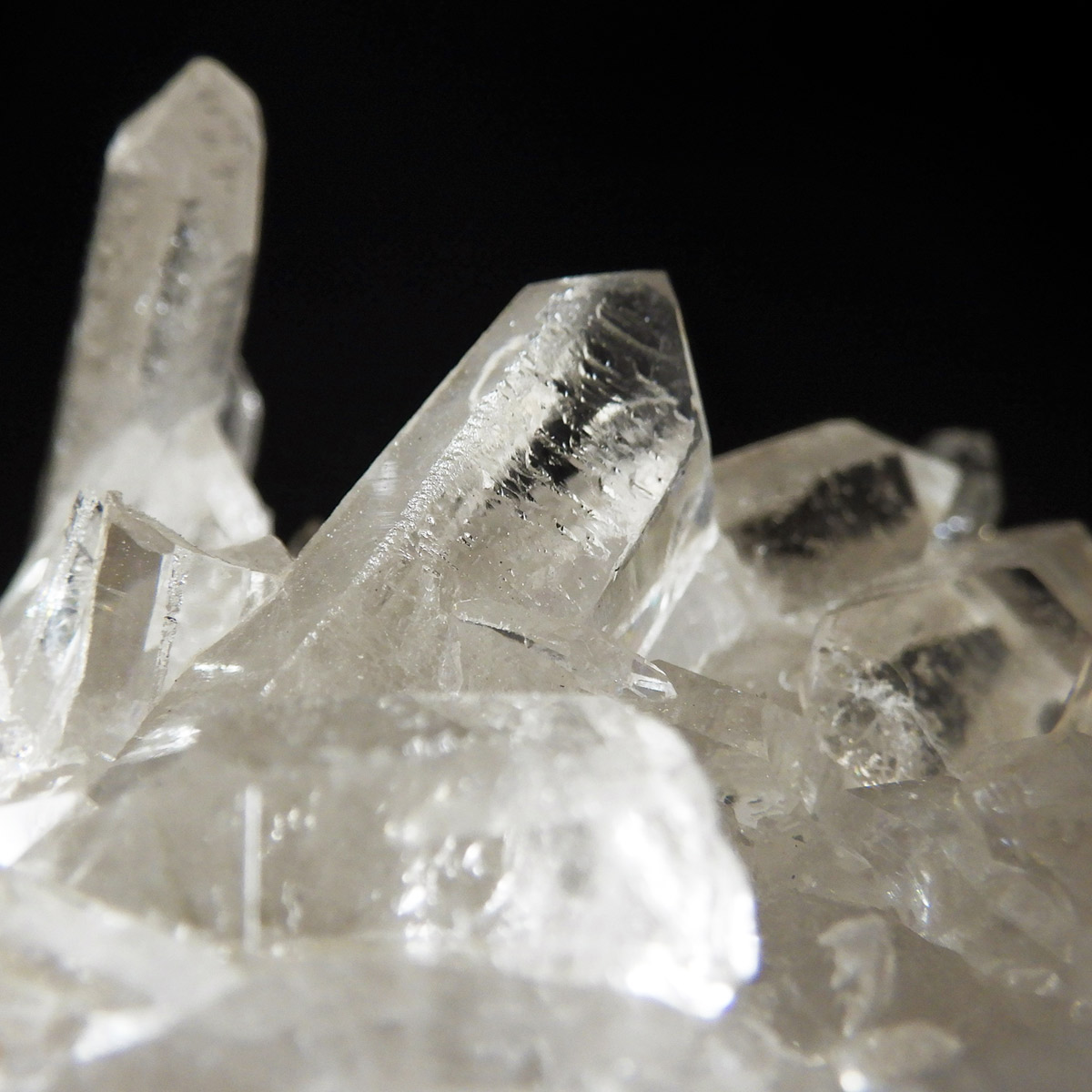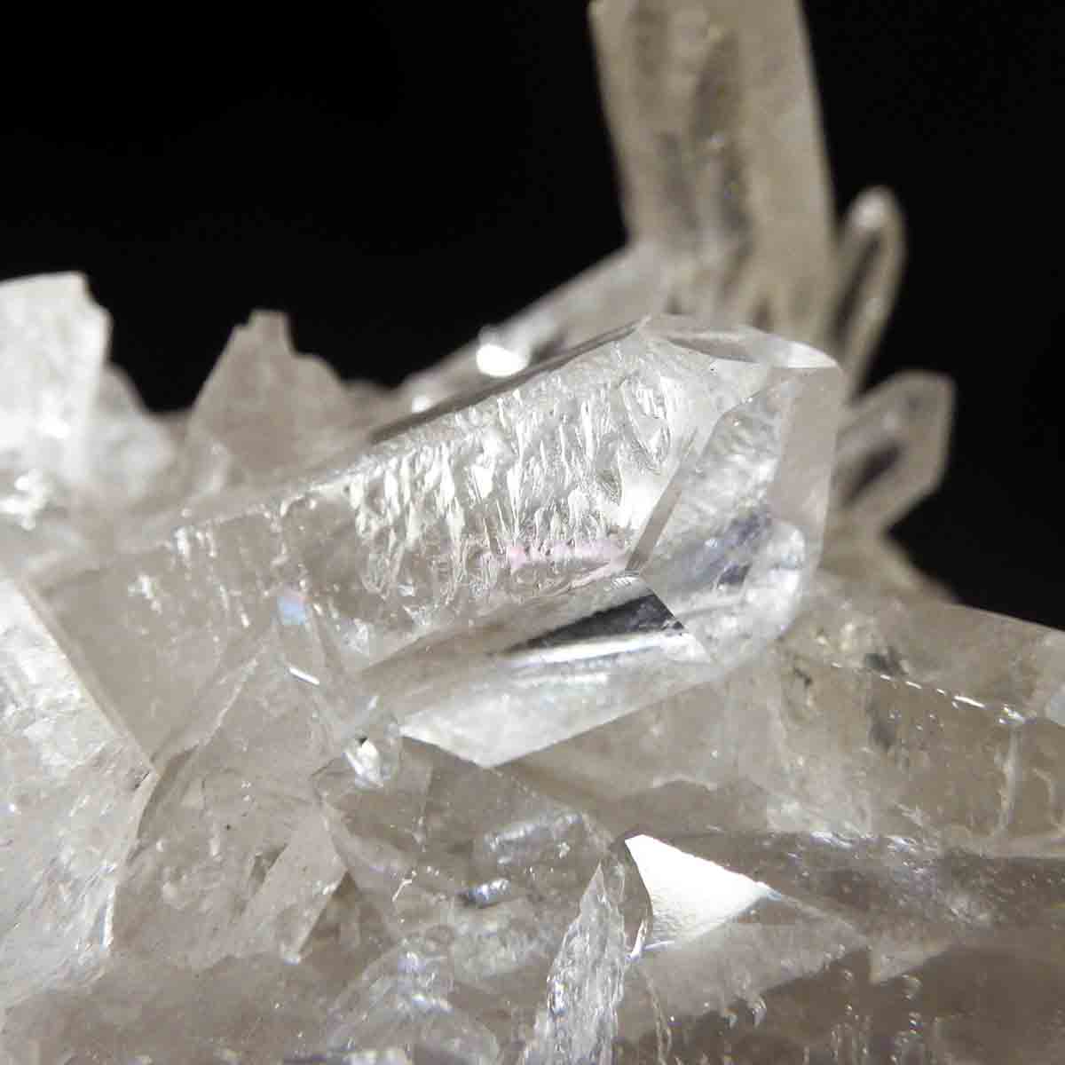 非常に透明度の高い大小様々な結晶が複雑に絡み合い、見る角度によって様々な表情を見せる大変美しいクラスターです。