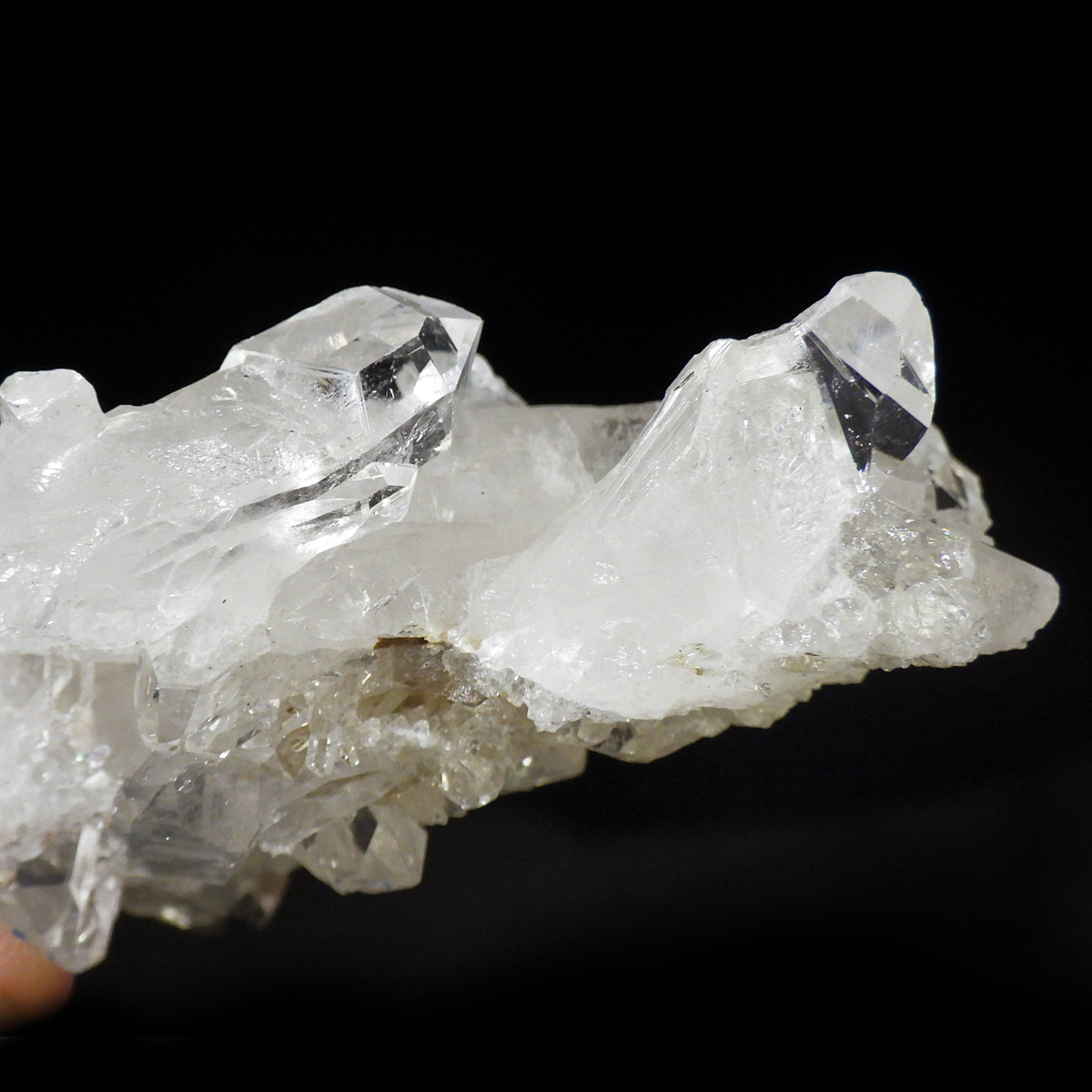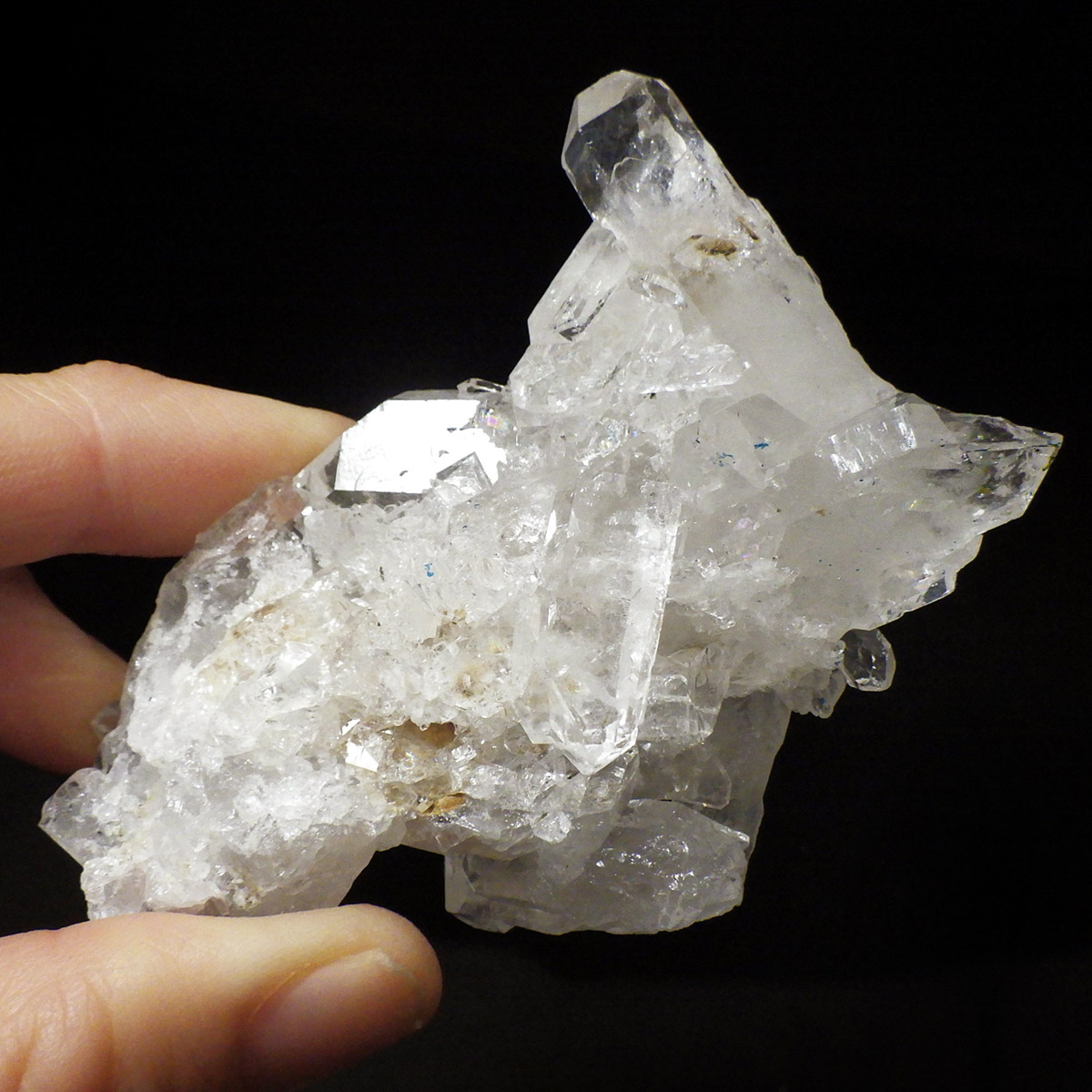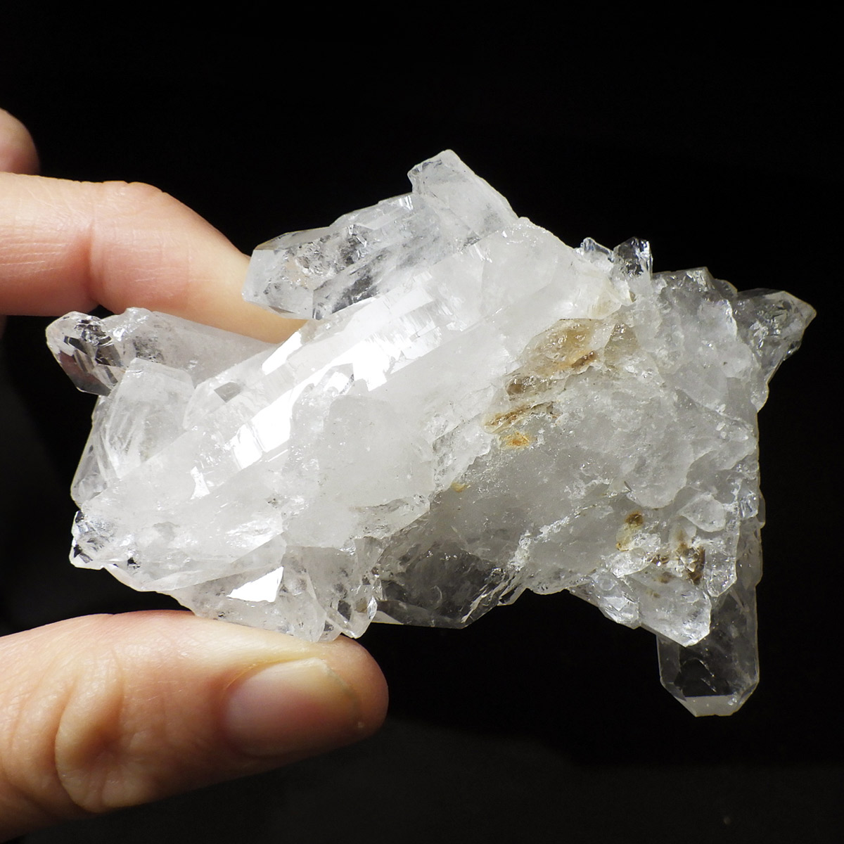 非常に透明度の高い大小様々な結晶が複雑に絡み合い、見る角度によって様々な表情を見せる大変美しいクラスターです。