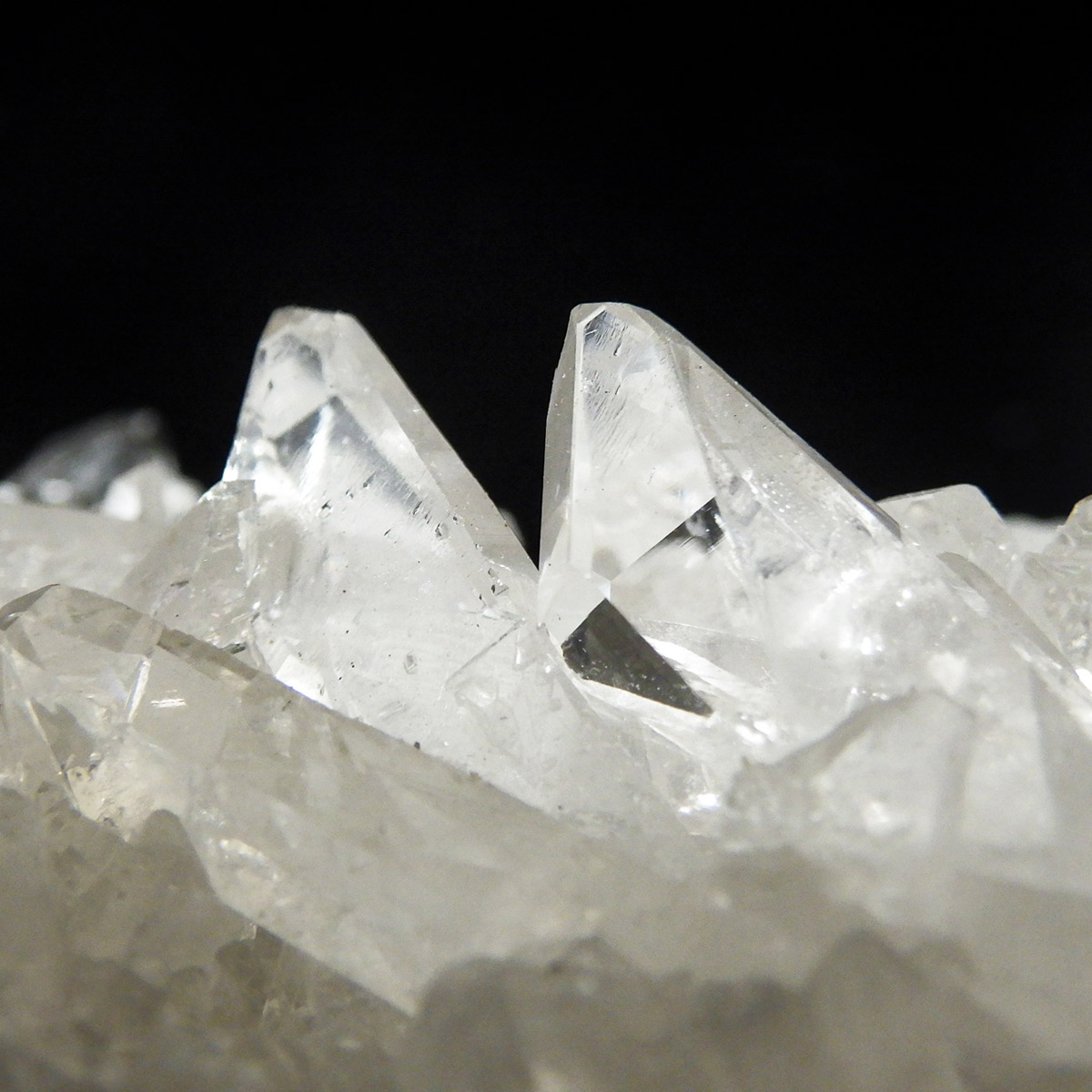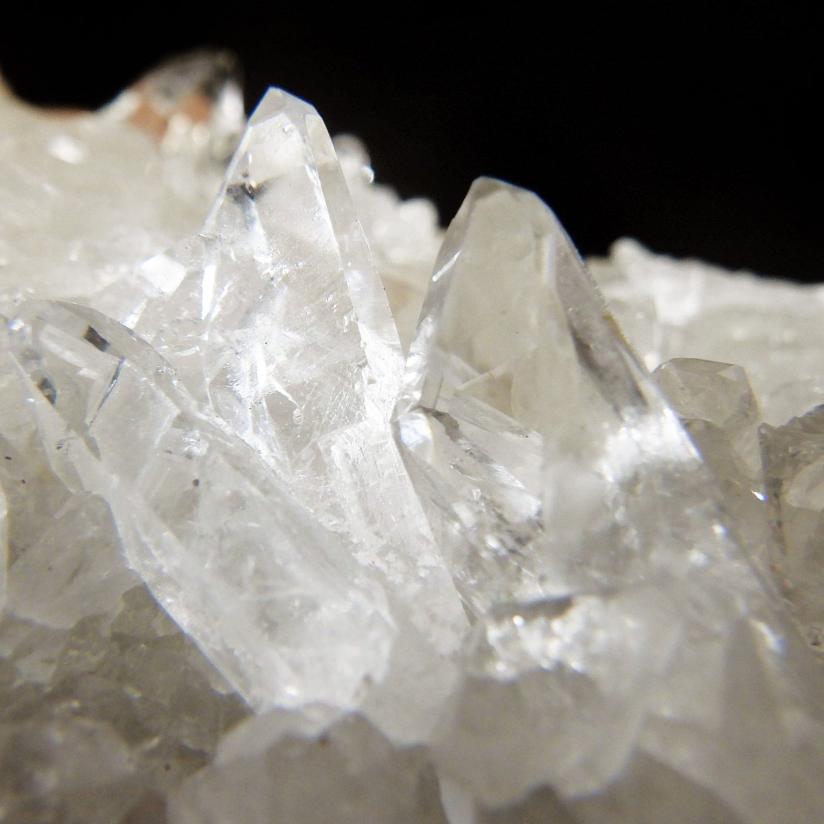 非常に透明度の高い大小様々な結晶が複雑に絡み合い、見る角度によって様々な表情を見せる大変美しいクラスターです。