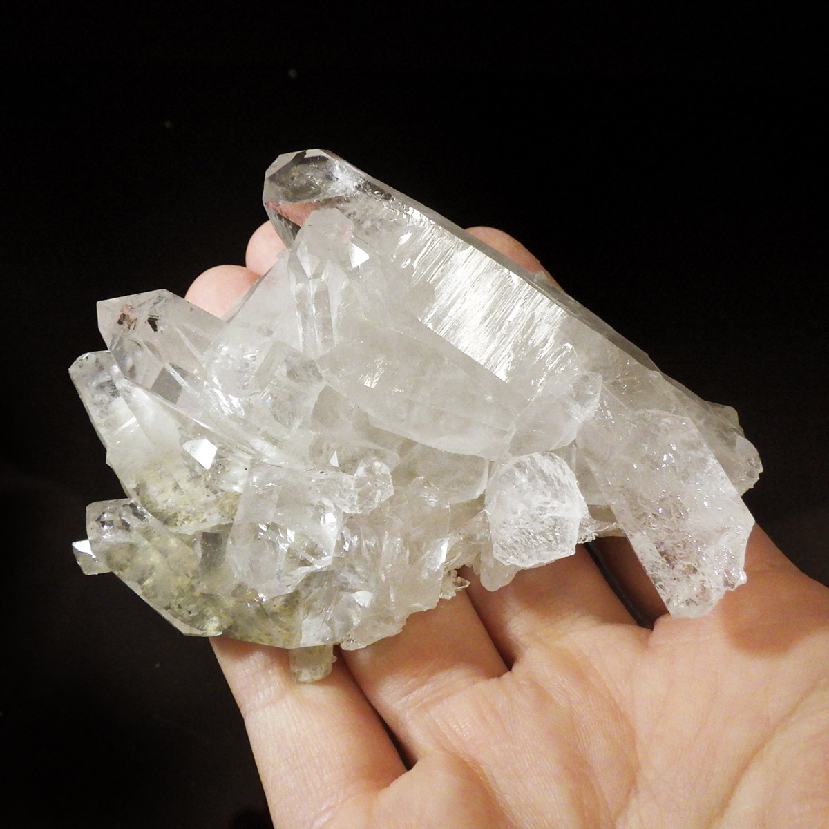 また、水晶柱が放射線状に伸びて立体的な構造を作っているものが多く、「これぞ、水晶クラスター」という形状をしています。