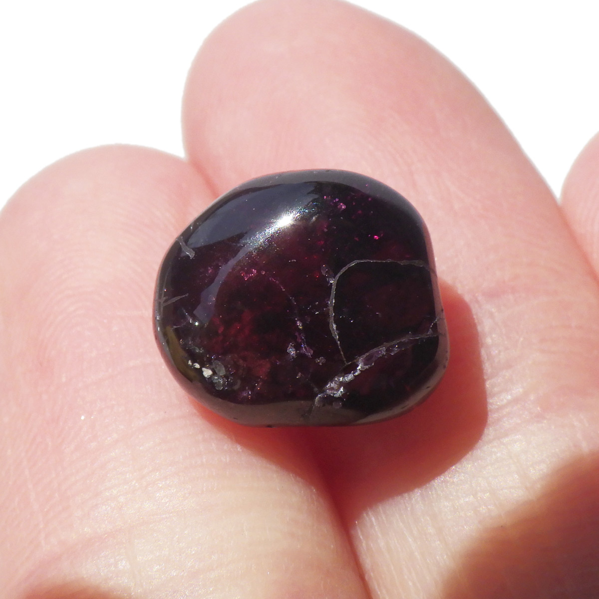 ブラジル産のガーネット、タンブルです。ガーネット族のアルマンディンという種類。小さめですが透明度が高い印象です。光に透かすととても美しい赤色を示します。アクティブなエネルギーは多くの場面で背中を押してくれる積極性の象徴とされています。