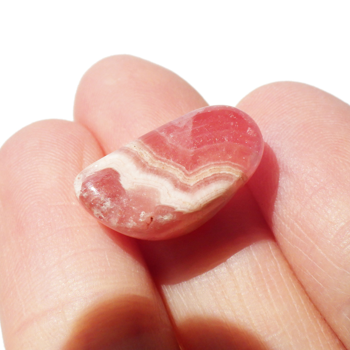 アルゼンチン産のインカローズ、タンブルです。インカローズというこの通称は、かつてインカ帝国が栄えたといわれるアンデス山脈から多く産出され、石をカットした面に、まるでバラの花を思わせる美しい模様が現れたことからそう呼ばれるようになりました。明るいピンクのインカローズで透明感もある品質の良いものになります。