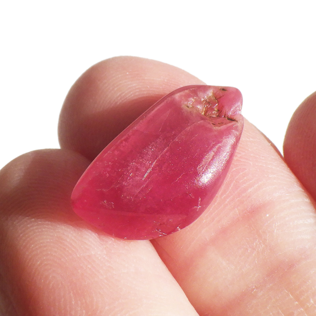ブラジル産のロードナイト、タンブルです。まさに可憐なバラを連想させる高貴な紅色が人気のロードナイトですが、今回ご用意しているものは、AAAクラスのものです。ブラジル産のロードナイトのトップグレードのもので、鮮やかな発色は紅色に近く、光を通すとさらにまたその発色が美しいです。
