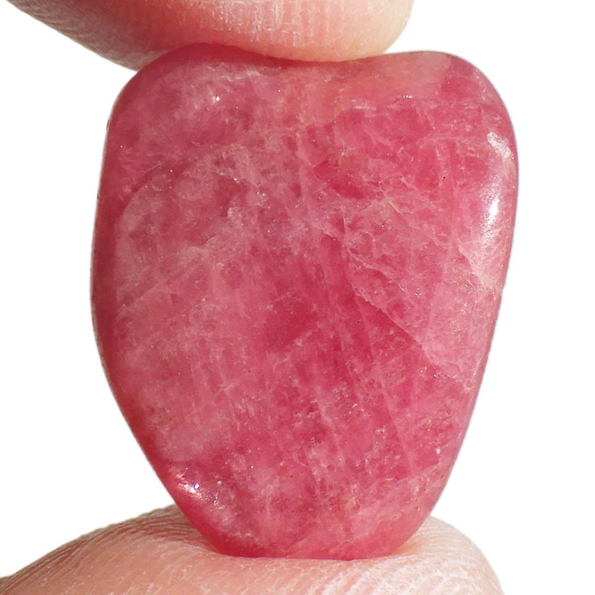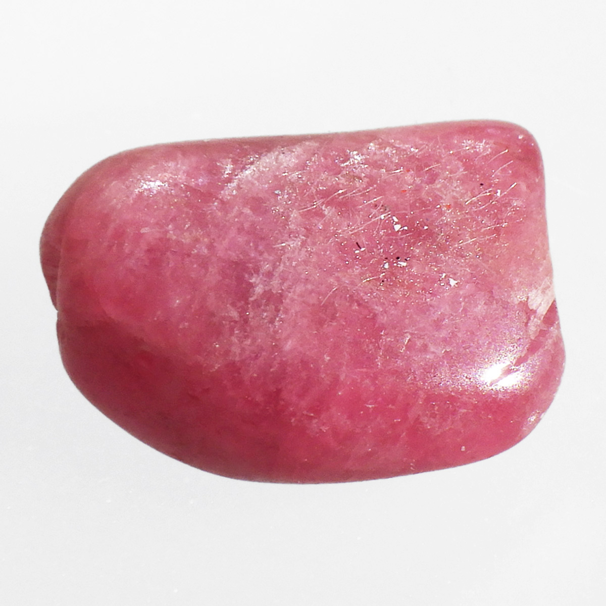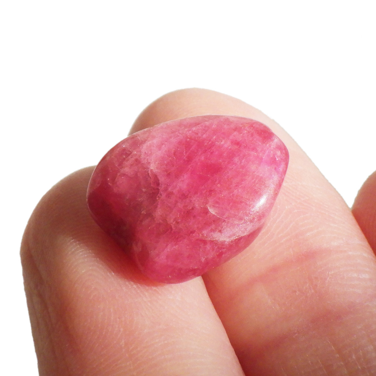 ブラジル産のロードナイト、タンブルです。まさに可憐なバラを連想させる高貴な紅色が人気のロードナイトですが、今回ご用意しているものは、AAAクラスのものです。ブラジル産のロードナイトのトップグレードのもので、鮮やかな発色は紅色に近く、光を通すとさらにまたその発色が美しいです。
