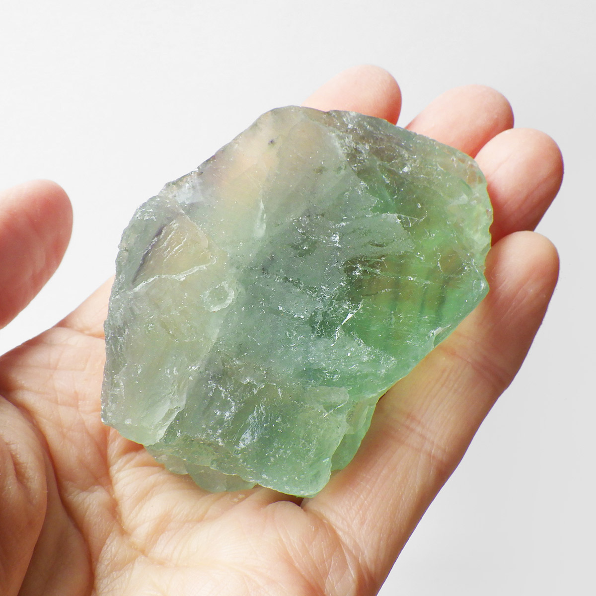 チャイナ産、フローライトのラフカット原石です。ラフカットとは元々巨大なフローライトの原石をお手頃で飾りやすいサイズにカットした原石のことです。光に透かすと縞模様や、グリーンのグラデーションが美しい、大き目サイズのフローライトです。インテリアなどで置かれると雰囲気が変わって良いかと思います。
