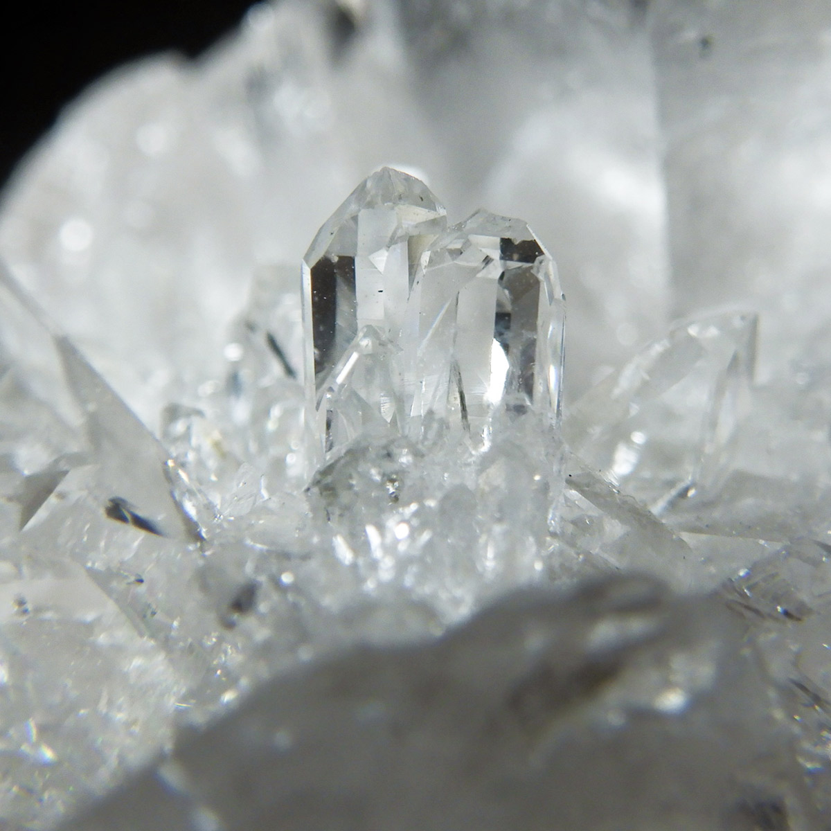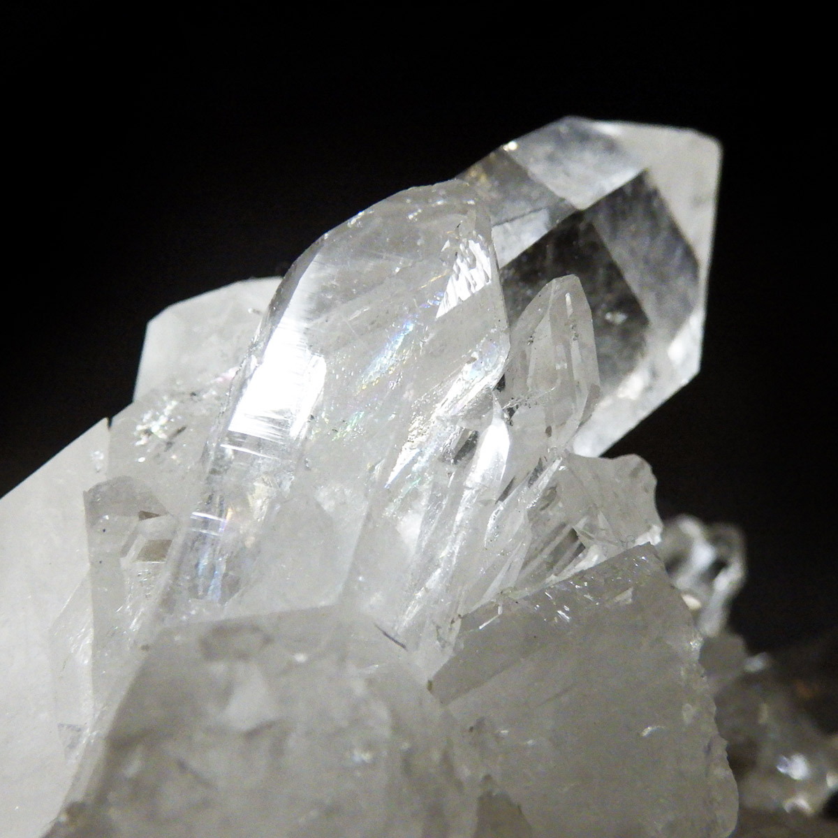 非常に透明度の高い大小様々な結晶が複雑に絡み合い、見る角度によって様々な表情を見せる大変美しいクラスターです。