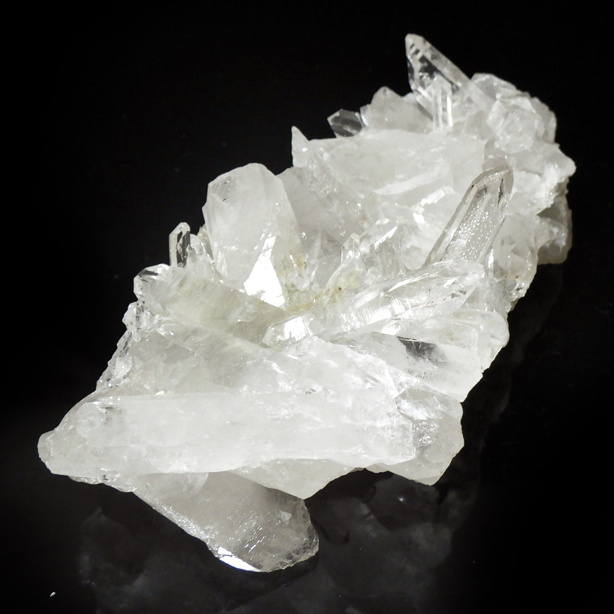 良質な水晶の産地、ブラジル ミナスジェライス州産の水晶クラスターです。この水晶クラスターの特徴は、照りと艶。光沢が強いため、驚くほどキラキラとしています。