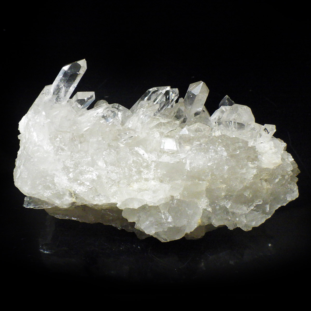 良質な水晶の産地、ブラジル ミナスジェライス州産の水晶クラスターです。この水晶クラスターの特徴は、照りと艶。光沢が強いため、驚くほどキラキラとしています。