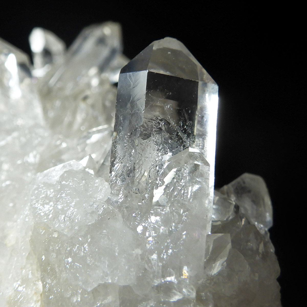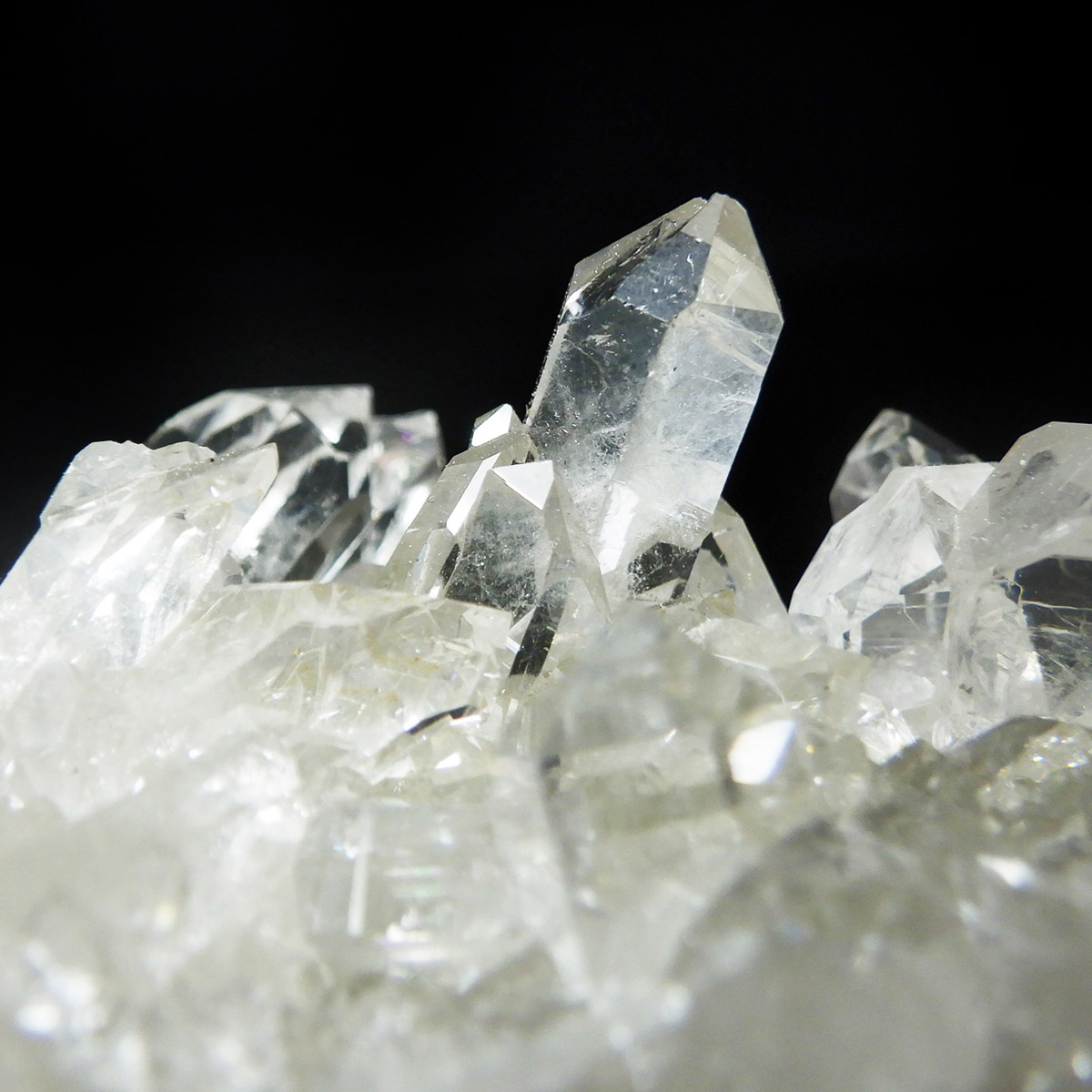 非常に透明度の高い大小様々な結晶が複雑に絡み合い、見る角度によって様々な表情を見せる大変美しいクラスターです。