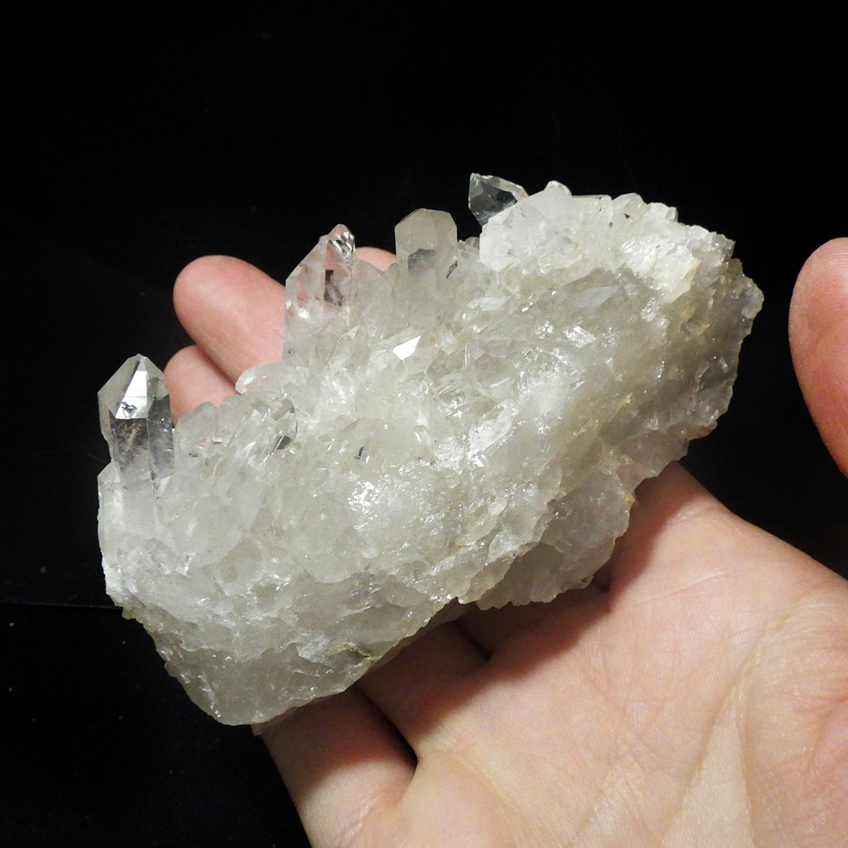 また、水晶柱が放射線状に伸びて立体的な構造を作っているものが多く、「これぞ、水晶クラスター」という形状をしています。