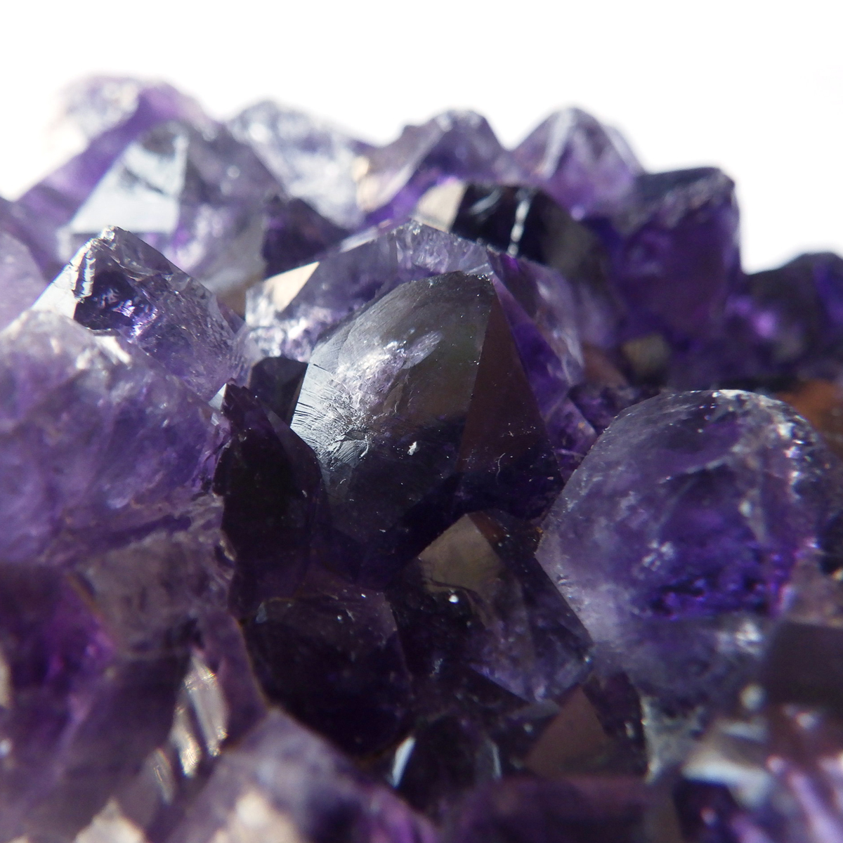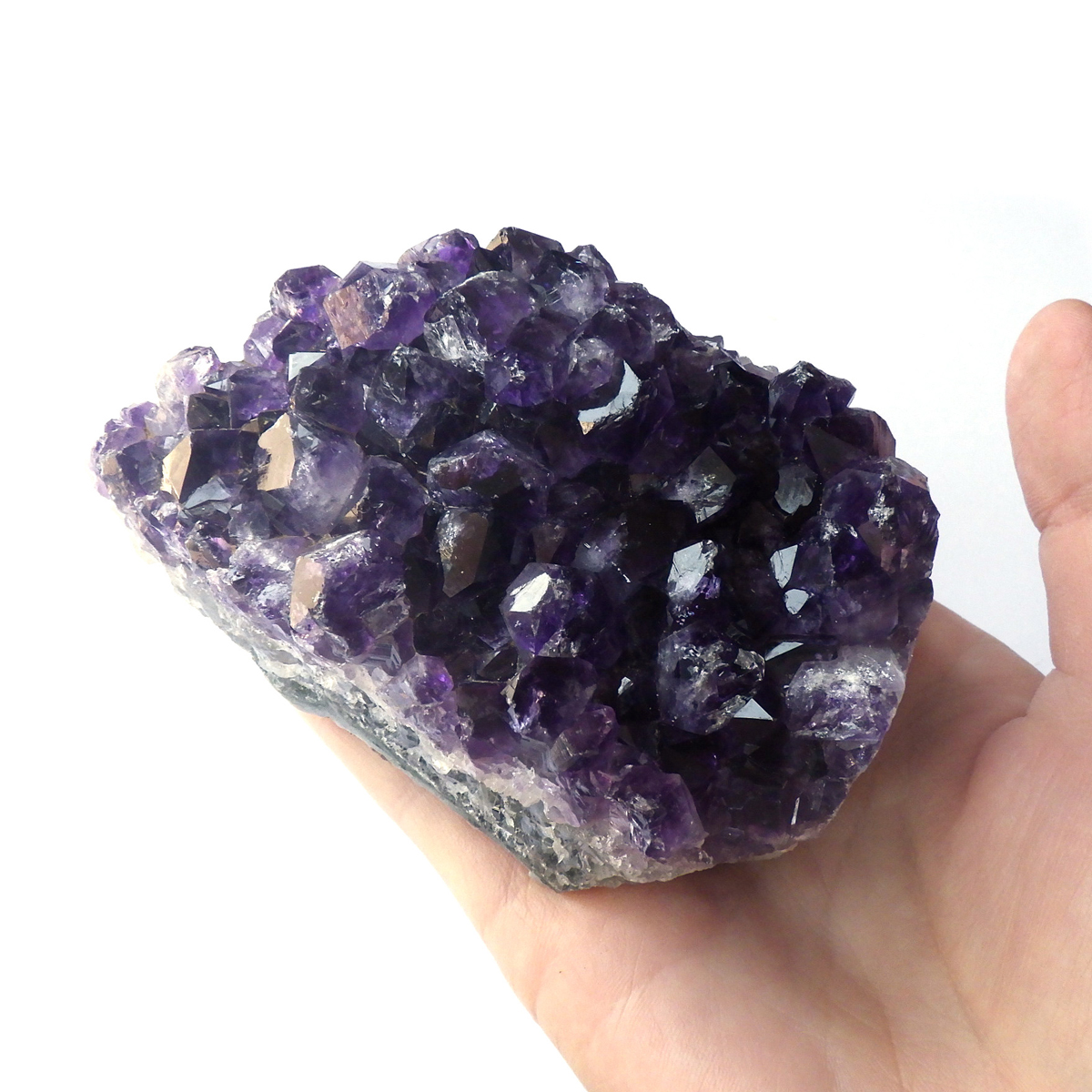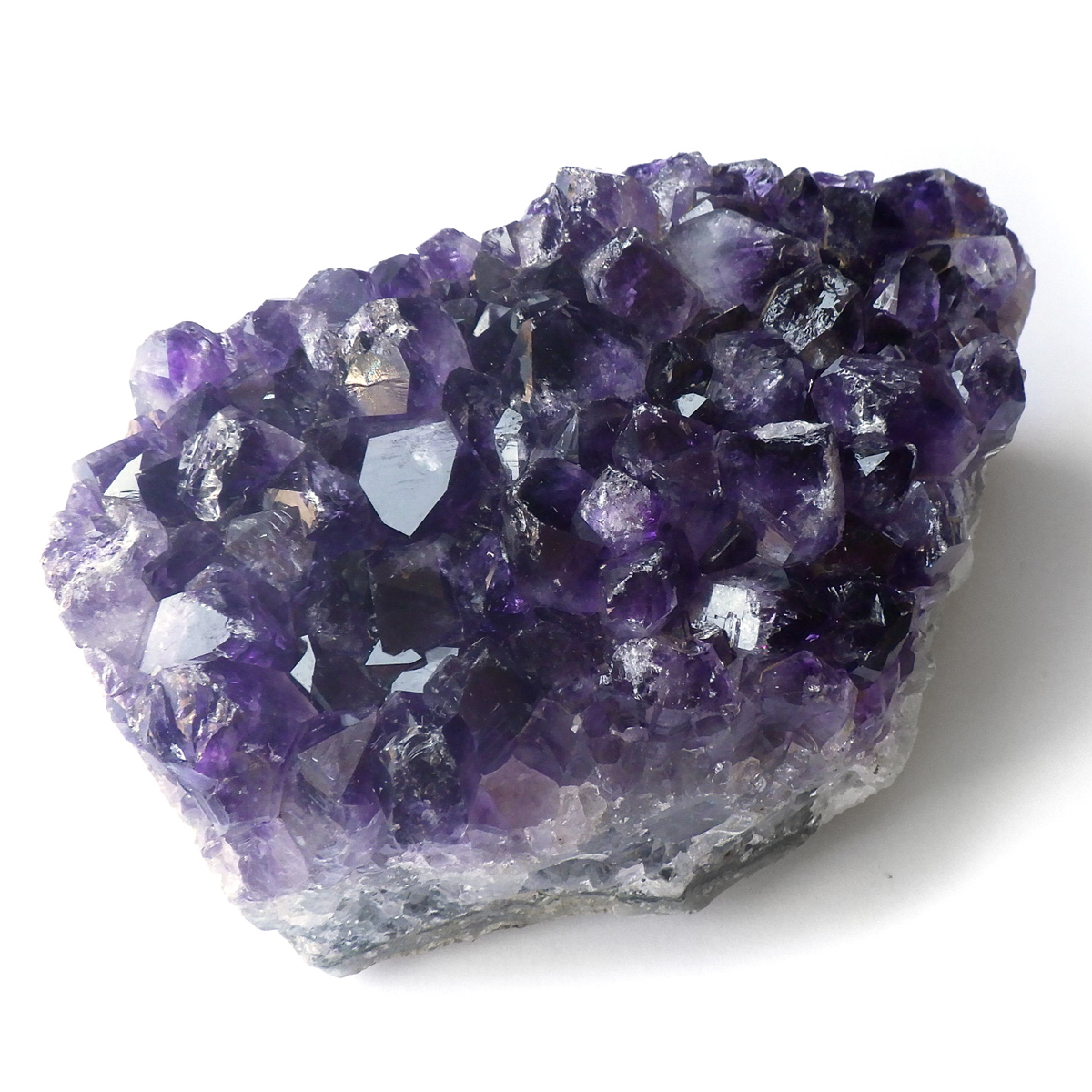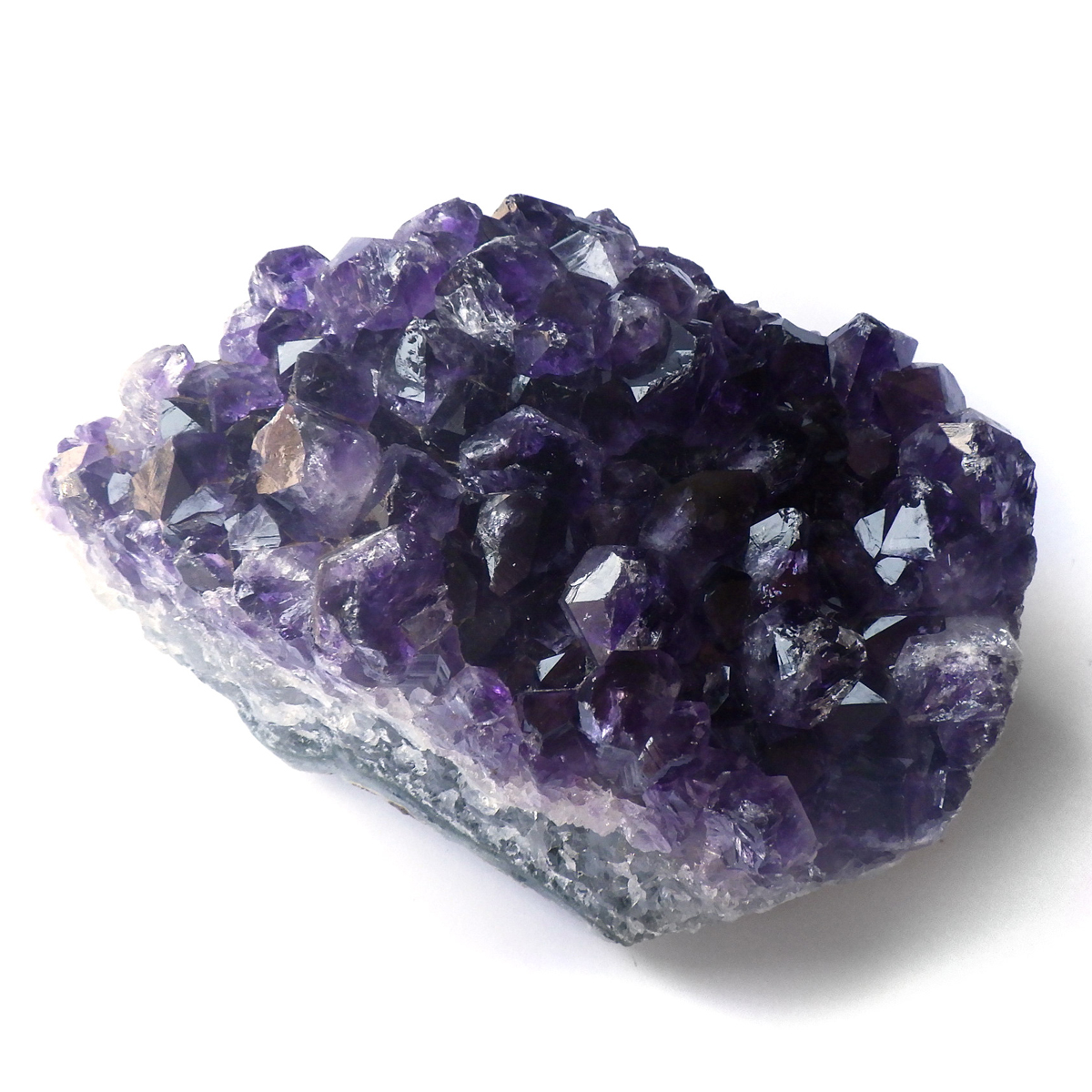 ブラジル産の特大サイズのアメジストクラスターです。小粒ながら一つ一つの結晶が美しく成長したアメジストクラスターです。透明感があり、濃い紫が美しい一点です。ブレスレットや空間の浄化用に置いていただくといいと思います。