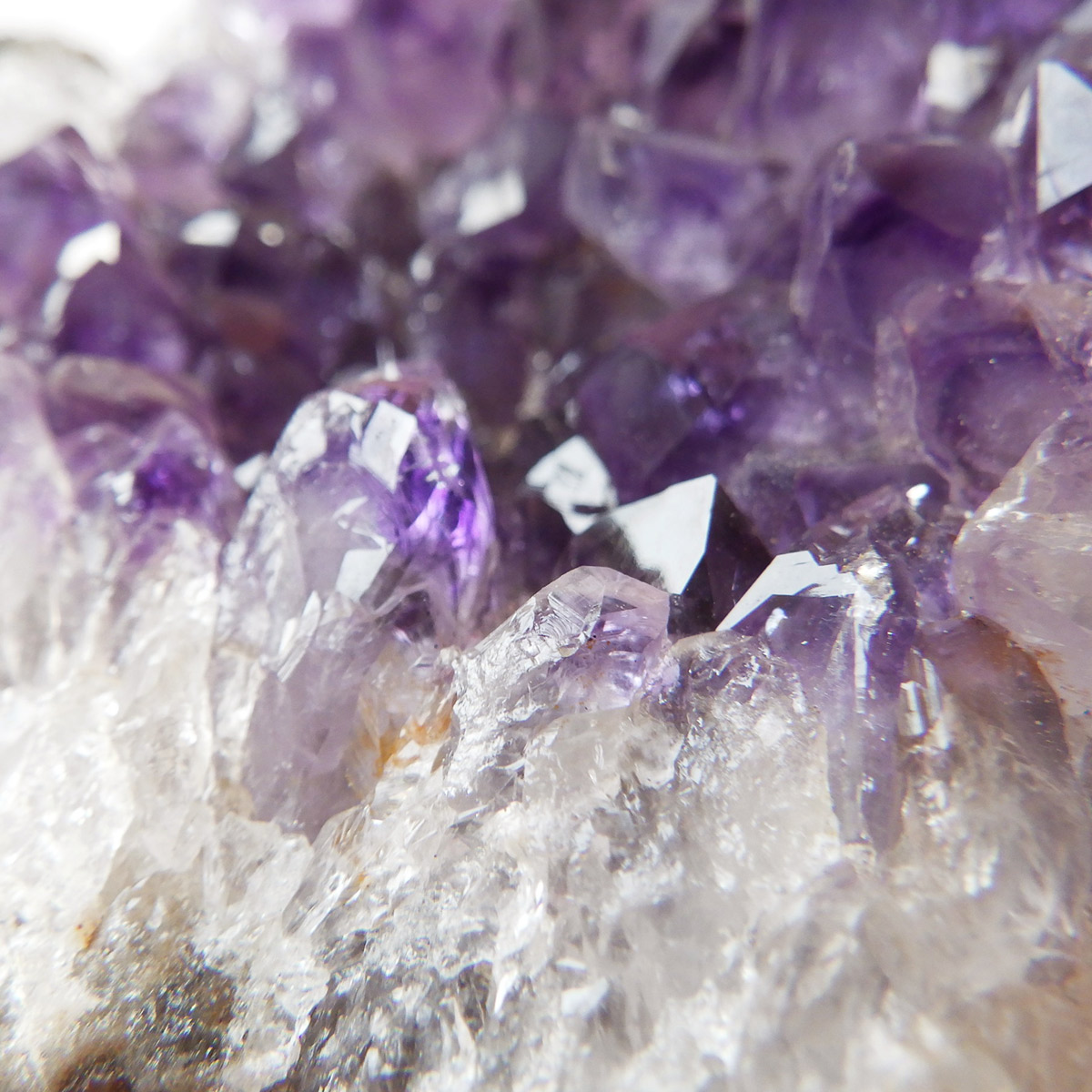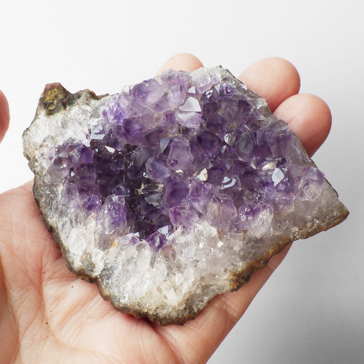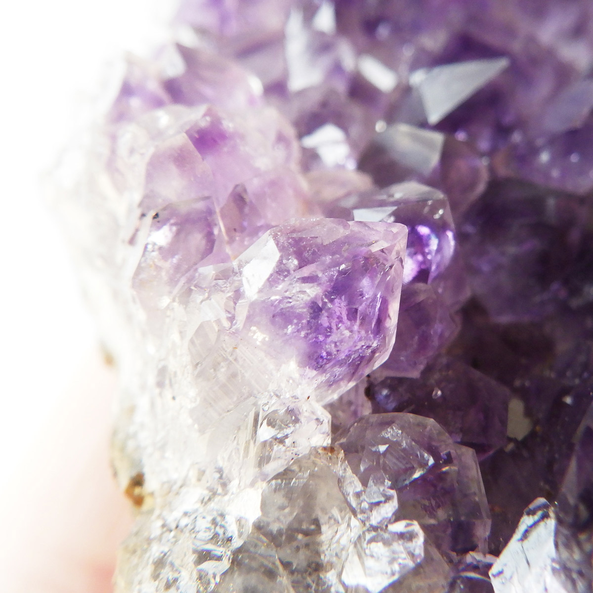 ウルグアイ産のブレスレットの浄化に適当なサイズのアメジストクラスターです。一つ一つの結晶が細かく光の反射で美しくキラキラと輝きます。透明感があり、良質なアメジストの証である紫の色がしっかりと入っています。とてもきれいでおすすめです。