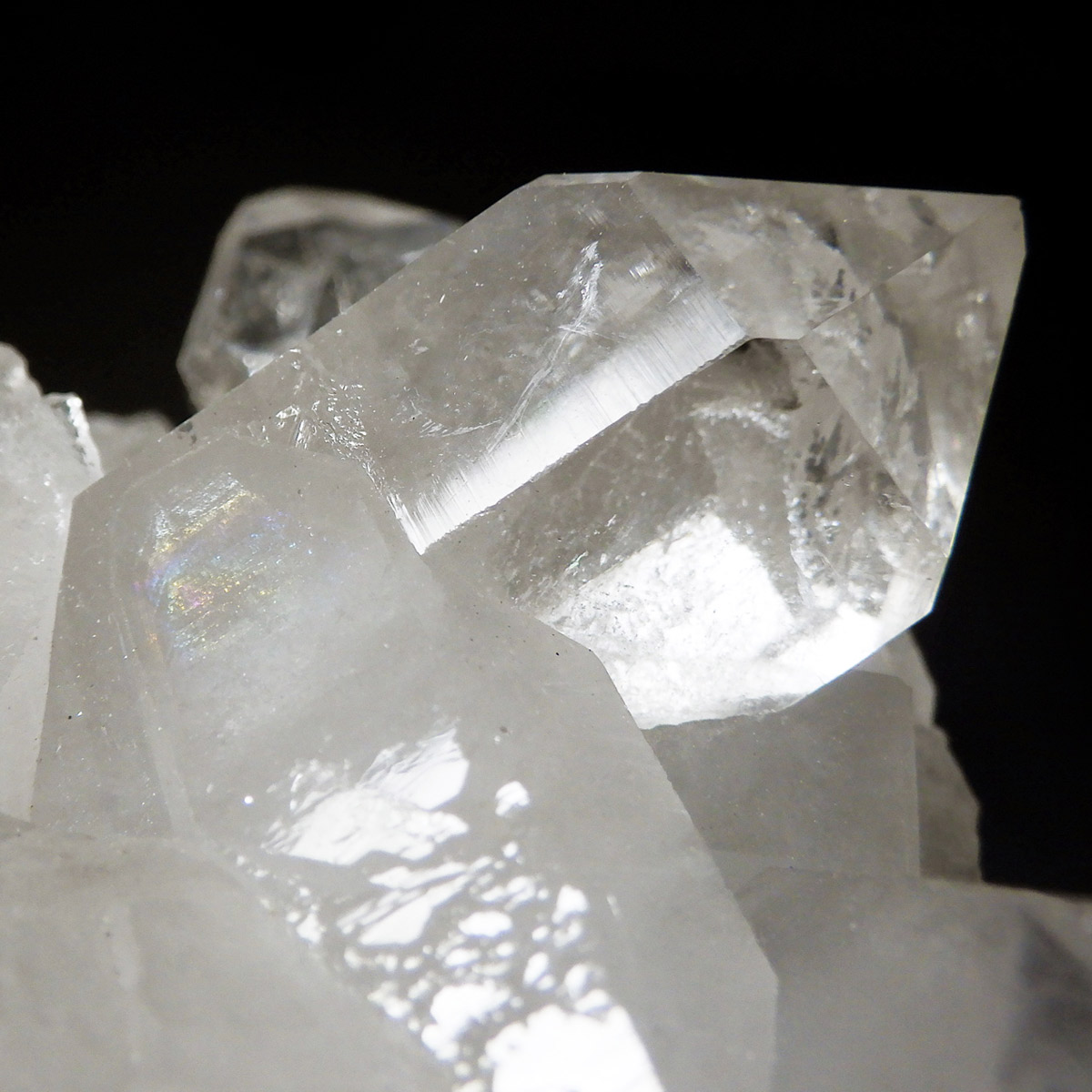 非常に透明度の高い大小様々な結晶が複雑に絡み合い、見る角度によって様々な表情を見せる大変美しいクラスターです。