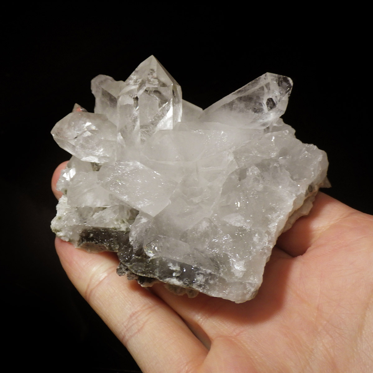 また、水晶柱が放射線状に伸びて立体的な構造を作っているものが多く、「これぞ、水晶クラスター」という形状をしています。