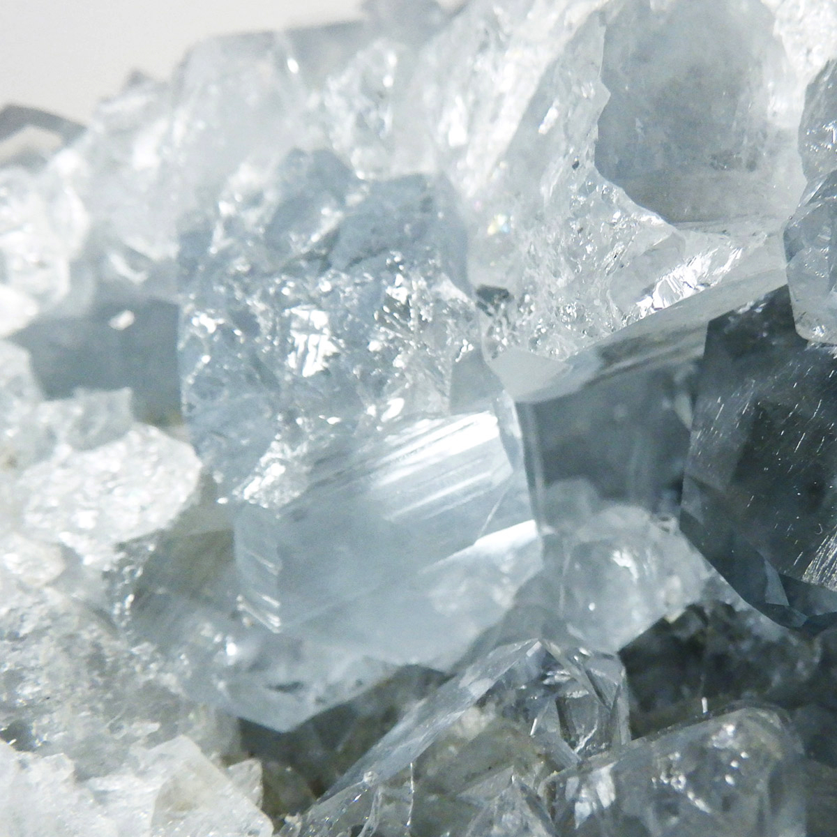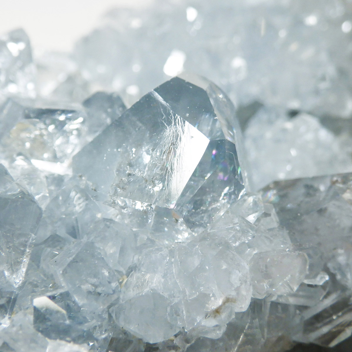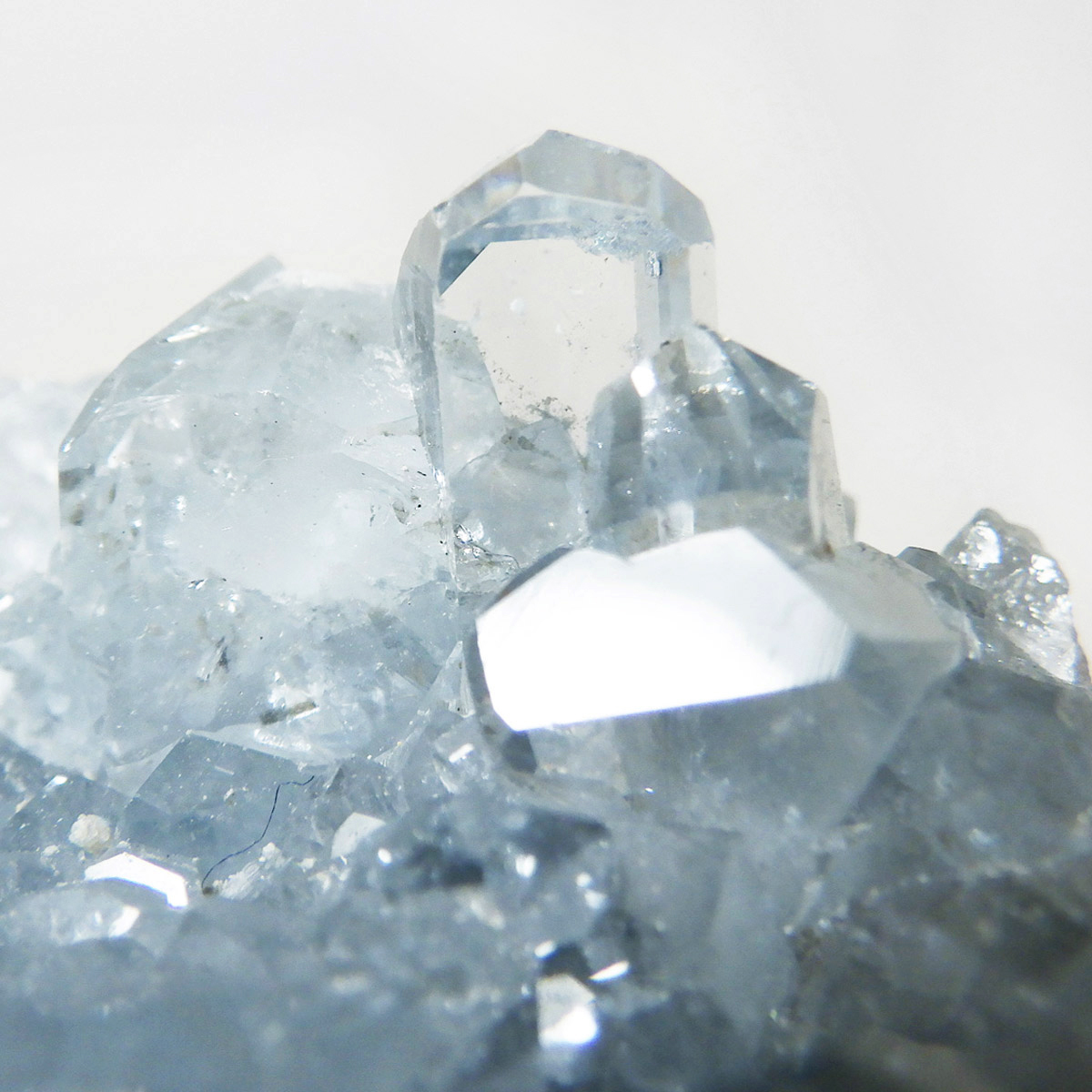 セレスタイト(天青石)母岩付きクラスターです。マダガスカル産のものは、母岩が丸みを帯びており、土台が白っぽいのが特徴です。 土台から突き出た、透明感あるブルーの結晶は非常に魅力的です。艶があり大変美しい一点です。