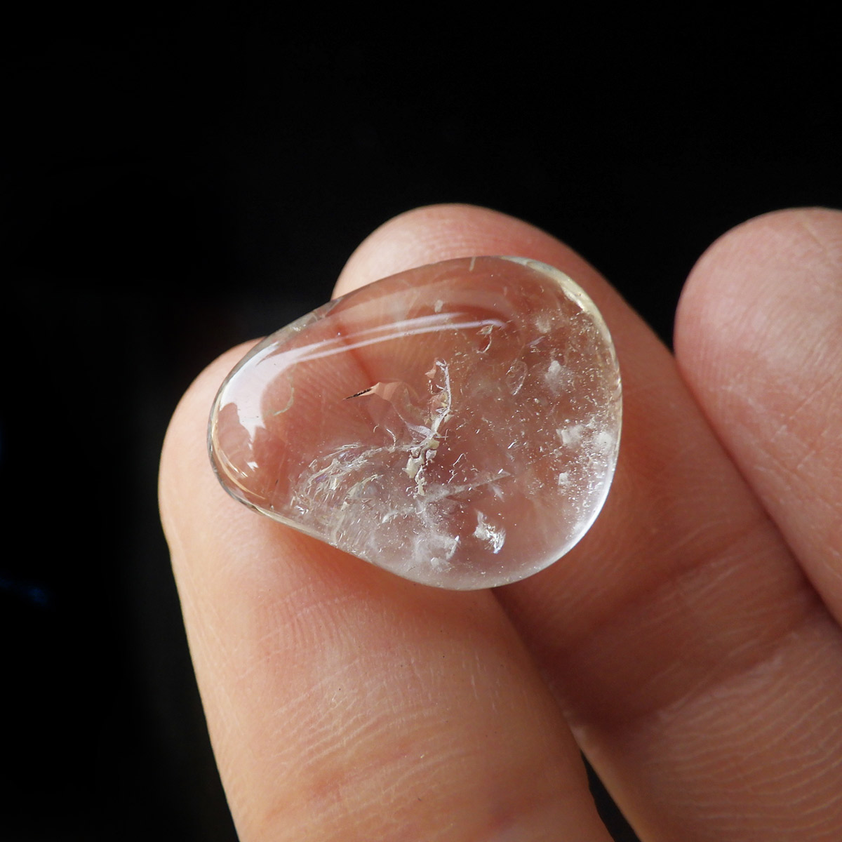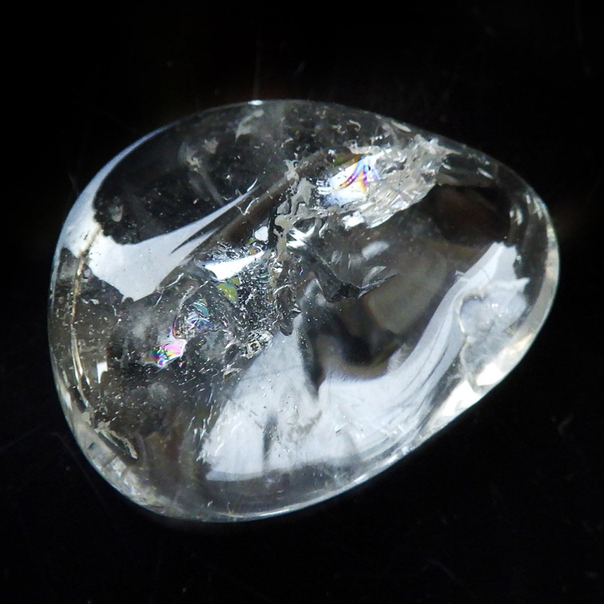 ブラジル産のブルートパーズ、タンブルです。トパーズは様々な色を持つ鉱物であり、和名を「黄玉(おうぎょく)」というように、本来は「黄色からオレンジ色」のトパーズがスタンダードなカラーとなっています。 その中でも、青色を発するものがブルートパーズと呼ばれています。しかし、青色のトパーズが天然で生まれることは大変希少であり、現在はほとんど見つかることがありません。 そのため、市場で流通しているブルートパーズのほとんどは、ホワイトトパーズに放射処理が施されています。今回ご用意したブルートパーズは、まさに天然のもので、大変希少価値の高いものです。