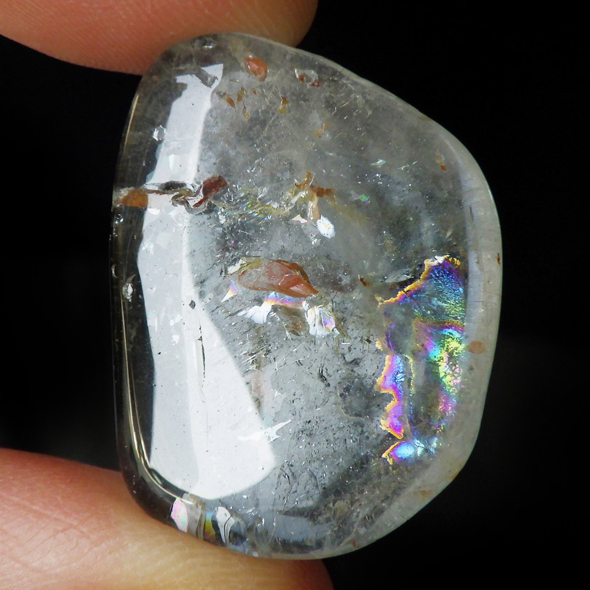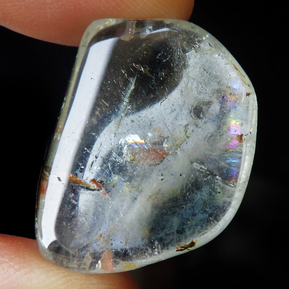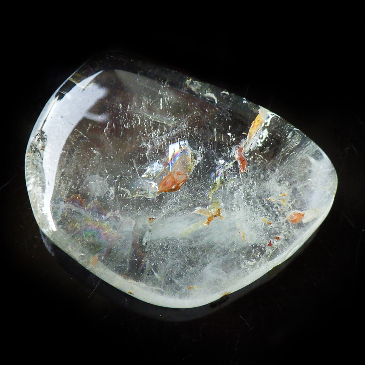 ブラジル産のブルートパーズ、タンブルです。トパーズは様々な色を持つ鉱物であり、和名を「黄玉(おうぎょく)」というように、本来は「黄色からオレンジ色」のトパーズがスタンダードなカラーとなっています。